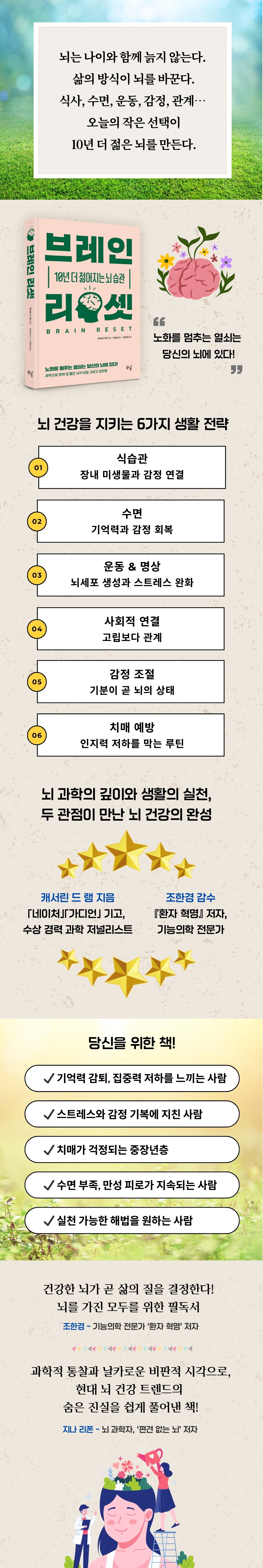 ¡ººê·¹ÀÎ ¸®¼Â¡»Àº Ãֽгú°úÇÐ ¿¬±¸¸¦ ¹ÙÅÁÀ¸·Î, ÀÏ»óÀÇ ÀÛÀº ½À°ü¸¸À¸·Î ³ú¸¦ Àþ°í °Ç°ÇÏ°Ô À¯ÁöÇÒ ¼ö ÀÖ´Ù´Â °úÇÐÀû ±Ù°Å¿Í ½Çõ¹ýÀ» Á¦½ÃÇÑ´Ù. ´Ù¼öÀÇ ¼ö»ó °æ·ÂÀ» Áö´Ñ °úÇÐ Àú³Î¸®½ºÆ® ij¼¸° µå ·©Àº Á÷Á¢ °ÞÀº ÆíµÎÅë°ú ½Å°æ°ú Áø·á °æÇèÀ» °è±â·Î, ³úÀÇ È¸º¹·ÂÀ» ü°èÀûÀ¸·Î ޱ¸Çϱ⠽ÃÀÛÇß´Ù.