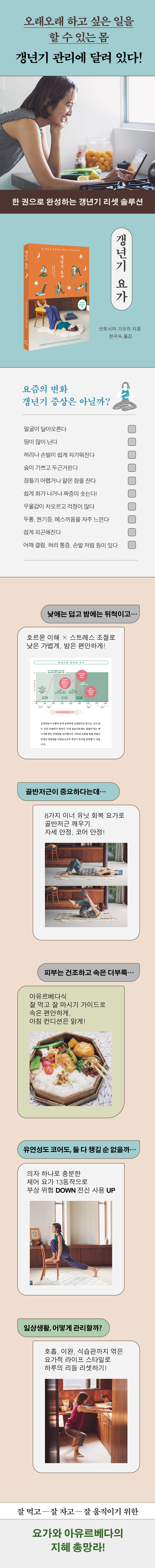 °»³â±â ¿©¼ºÀÇ °Ç°À» ´Ù·é Ã¥Àº ¸¹¾ÒÁö¸¸, ¿ä°¡¿Í ¾ÆÀ¯¸£º£´Ù¸¦ ÃàÀ¸·Î °»³â±â¸¦ ÁغñÇÏ°í °Ç³Ê°¡´Â ¹æ¹ýÀ» ü°èÀûÀ¸·Î Á¦½ÃÇÑ Ã¥Àº µå¹°¾ú´Ù. ¡¶°»³â±â ¿ä°¡-ÇÑ ±ÇÀ¸·Î ¿Ï¼ºÇÏ´Â °»³â±â ¸®¼Â ¼Ö·ç¼Ç¡·Àº ÀÇÀÚ¸¦ Ȱ¿ëÇÑ Ã¼¾î ¿ä°¡ 13µ¿ÀÛ, °ñ¹ÝÀú±Ù°ú º¹È¾±Ù, Ⱦ°Ý¸·À» ¾Æ¿ì¸£´Â ÀÌ³Ê À¯´Ö ȸº¹ ¿ä°¡ 8µ¿ÀÛ, ¾ÆÀ¯¸£º£´Ù À̷п¡ ±â¹ÝÇØ È£Èí°ú ÀÌ¿Ï, ¼ö¸é ·çƾ, ½Ä½À°ü±îÁö Çѵ¥ ¿«Àº Ã¥ÀÌ´Ù. ÀúÀÚ »êÅä½Ã¸¶ °¡¿À¸®´Â ±¹Á¦ ¿ä°¡ ÁöµµÀÚ(E-RYT500, YACEP)ÀÌÀÚ Æ®¶ó¿ì¸¶ ¼¾¼Æ¼ºê ¿ä°¡ ÆÛ½Ç¸®Å×ÀÌ¼Ç °æÇèÀ» ¹ÙÅÁÀ¸·Î, °úµµÇÑ ÀÇÁöº¸´Ù Áö¼Ó °¡´ÉÇÑ ÀÏ»óÀ» °Á¶ÇÑ´Ù. °»³â±â´Â ³¡ÀÌ ¾Æ´Ï¶ó ¶Ç ´Ù¸¥ Ãâ¹ß¼±À̶ó°í ÀÛ°¡´Â ¸»ÇÑ´Ù. ÀÌ Ã¥Àº ±× Ãâ¹ß¼±¿¡¼ °¡Àå Çö½ÇÀûÀÎ µ¿¹ÝÀÚ°¡ µÇ¾îÁÙ °ÍÀÌ´Ù.