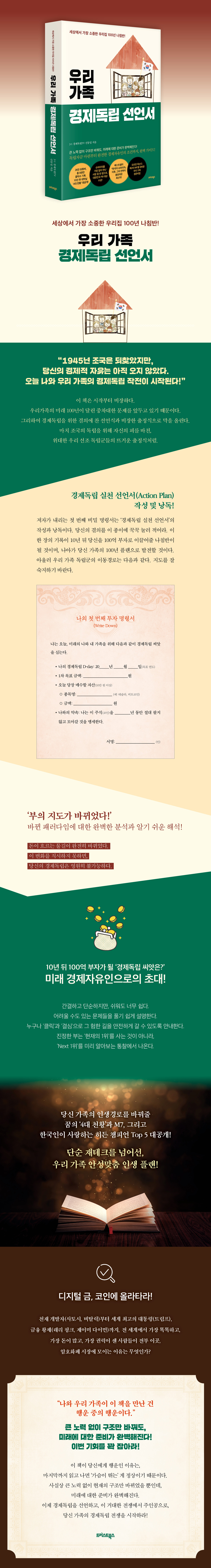 ÀúÀÚ°¡ ³»¸®´Â ù ¹øÂ° ºñ¹Ð ¸í·É¼´Â ¡®°æÁ¦µ¶¸³ ½Çõ ¼±¾ð¼¡¯ÀÇ ÀÛ¼º°ú ³¶µ¶ÀÌ´Ù. ´ç½ÅÀÇ °áÀǸ¦ ÀÌ Á¾ÀÌ¿¡ ²Ú²Ú ´·¯ Àû¾î¶ó. ÀÌ ÇÑ ÀåÀÇ ±â·ÏÀÌ 10³â µÚ ´ç½ÅÀ» 100¾ï ºÎÀÚ·Î À̲ø¾îÁÙ ³ªÄ§¹ÝÀÌ µÉ °ÍÀ̸ç, ³ª¾Æ°¡ ´ç½Å °¡Á·ÀÇ 100³â Ç÷£À¸·Î ¹ßÀüÇÒ °ÍÀÌ´Ù. ¾Æ¿ï·¯ ¿ì¸® °¡Á· µ¶¸³±ºÀÇ À̵¿°æ·Î´Â ´ÙÀ½°ú °°´Ù. Áöµµ¸¦ Àß ¼÷ÁöÇϱ⠹ٶõ´Ù.