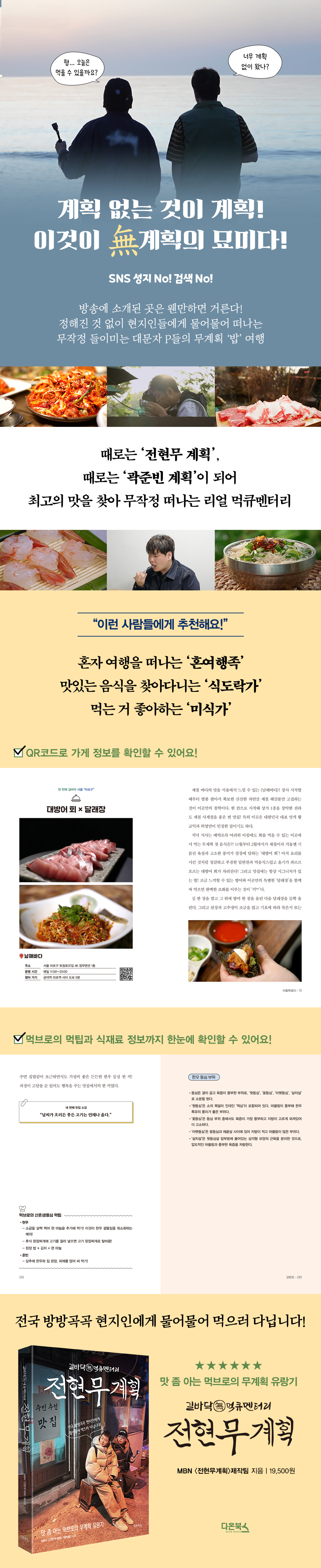 ¼¼»ó¿¡ ¸ÔÀ» °ÍÀº ¸¹°í ¸ÀÀÖ´Â °Ç ´õ ¸¹´Ù! Àü±¹ ¹æ¹æ°î°î ¿ÀÇ·±ÀÌ ³ÑÃijª´Â ¿þÀÌÆÃ ¸ÀÁý, SNS ¼ºÁö°¡ ³ÑÃijª´Â ¼¼»ó¿¡¼ ¿ì¸®°¡ ¸ð¸£°í Áö³ªÃÆÀ»Áöµµ ¸ð¸¦ ÁøÂ¥ ¼ûÀº ¸ÀÁýÀÌ ÀÖ´Ù? À¯¸íÇØÁöÁö ¾Ê±æ ¹Ù¶ó¸ç ¡®³ª¸¸ ¾Ë°í ½ÍÀº¡¯ Âð ¸ÀÁýÀº Á¸ÀçÇÏ´Â ¹ý! ¸À Á» ¾Æ´Â ¸ÀÀß¾Ë ¡®ÀüÇö¹«¡¯¿Í ¿©ÇàÇÏ¸ç ´Ù¾çÇÑ ¸ÀÀ» Á¢Çؿ ¡®°ûÁغó¡¯ÀÌ Ã¶ÀúÈ÷ ³²ÀÇ µî¿¡ ¾÷Çô °¡´Â ¸®¾ó ·Îµå ¸ÔÅ¥¸àÅ͸® ¡´ÀüÇö¹«°èȹ¡µ, Ã¥À¸·Î Àçź»ýÇÏ´Ù! °Ë»öÇØµµ Àß ³ª¿ÀÁö ¾Ê´Â °¡°Ô, ÇöÁöÀε鸸 °¡´Â ÁøÂ¥ ¸ÀÁý! °ñ¸ñ°ú »ç¶÷ ±×¸®°í À½½ÄÀÌ ÇÔ²² »ì¾Æ ¼û ½¬´Â »ý»ýÇÑ ÇöÀå! ÇöÁöÀο¡°Ô ¹°¾î¹°¾î ã¾Æ°¡ ¹«ÀÛÁ¤ µéÀ̴̹ ´ë¹®ÀÚ PµéÀÇ ¡®¹ä¡¯ ¿©ÇàÀ» ÇÔ²² ¶°³ªº¸ÀÚ!