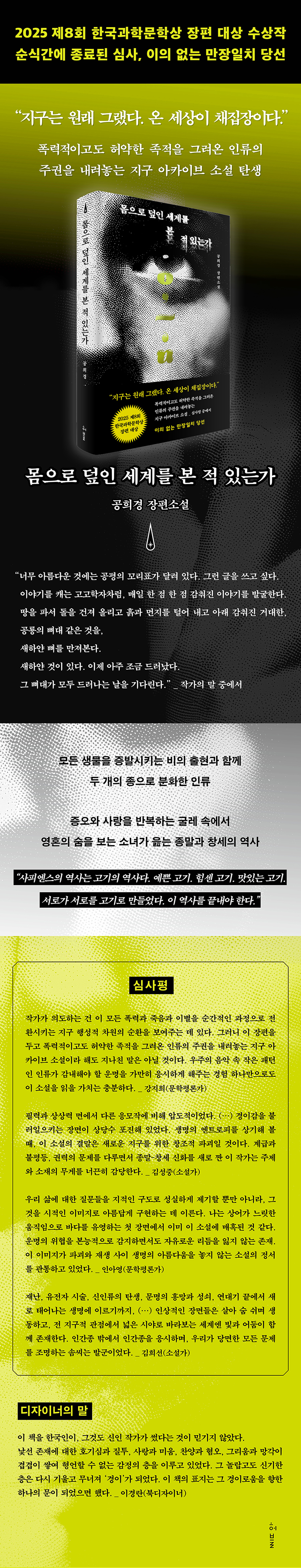 2025 Á¦8ȸ Çѱ¹°úÇй®Çлó ÀåÆí ´ë»óÀÛ, °øÈñ°æÀÇ ¡º¸öÀ¸·Î µ¤ÀÎ ¼¼°è¸¦ º» Àû Àִ°¡¡»°¡ Çãºí¿¡¼ Ãâ°£µÆ´Ù. Çѱ¹°úÇй®ÇлóÀº ±èÃÊ¿±, õ¼±¶õ, û¿¹ µî ÇöÀç Ȱ¹ßÈ÷ Ȱµ¿ÇÏ´Â SF ÀÛ°¡µéÀÇ Åº»ýÀ» ÇÔ²²ÇÏ¸ç ±¹³» ÃÖ´ëÀÇ SF ÀÛ°¡ µî¿ë¹® ¿ªÇÒÀ» ÇØ¿Ô´Ù. ƯÈ÷ ¿ÃÇØºÎÅÍ´Â ÀÀ¸ð ÀÚ°ÝÀ» ½ÅÀÎ ÀÛ°¡¿¡¼ ±â¼º ÀÛ°¡±îÁö È®´ëÇÏ¸ç °ø¸ðÀÇ ÆøÀ» È®ÀåÇß°í, ±× °á°ú Àü³âº¸´Ù ÀÀ¸ðÀÛÀÌ ´Ã¾î³ °¡¿îµ¥, ½ÅÀÎ ÀÛ°¡ °øÈñ°æÀÌ ±è¼ºÁߤý±èÈñ¼± ¼Ò¼³°¡¿Í °ÁöÈñ¤ýÀξƿµ ¹®ÇÐÆò·Ð°¡ÀÇ ²Ä²ÄÇÑ ½É»ç¸¦ °ÅÃÄ µî´ÜÀÇ ¿µ¿¹¸¦ ¾È¾Ò´Ù.