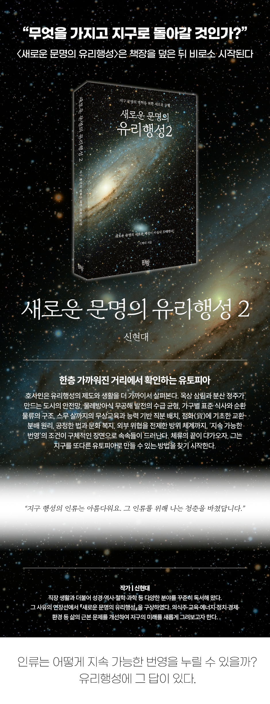 ¿¿¡³ÊÁö°¡ ºú¾î ³»´Â ¿ìÁÖÀÇ Çö»ó, ÇÙÀ¶ÇÕ°ú Ç×¼º ź»ý¿¡ ´ëÇÑ ¼³¸íÀº ÀÌ ¹®¸íÀÇ ±â¼ú°ú ¼¼°è°üÀ» °üÅëÇÏ´Â °úÇÐÀû ±âÃʸ¦ Á¦°øÇÑ´Ù. È£»çÀÎÀº °üÂûÀÚ¿¡¼ Áú¹®ÀÚ·Î À̵¿ÇÏ¿©, ¾î¶² ¿ä¼Ò´Â Áö±¸¿¡ °ð¹Ù·Î Àû¿ëÇÒ ¼ö ÀÖ°í ¾î¶² ¿ä¼Ò´Â Á¶Á¤ÀÌ ÇÊ¿äÇÑÁö¸¦ »ìÆìº»´Ù. À¯¸®Ç༺ÀÇ Áö¹èÀÚ, À¯¸®¿Õ°úÀÇ ¸¶Áö¸· ´ëÈ¿¡¼ ¿ì¸®´Â À¯¸®Ç༺¿¡¼ º¸ÀÌ´Â ÀÌ»óÀû »çȸ ±¸Á¶°¡ Áö±¸¿¡ ¾î¶»°Ô ÀÌ½ÄµÉ ¼ö ÀÖ´ÂÁö¸¦ ´À³¢°Ô µÈ´Ù. 2±ÇÀº ÀåÁ¡¸¸À» ³ª¿ÇÏÁö ¾Ê°í ±× À¯Áö Á¶°Ç°ú º¸¿Ï ÀåÄ¡¸¦ ÇÔ²² À̾߱âÇÔÀ¸·Î½á, À¯¸® Ç༺ÀÌ ¡®½ÇÁ¦·Îµµ ÀÛµ¿ °¡´ÉÇÑ ÀÌ»óÇ⡯ÀÓÀ» Â÷ºÐÈ÷ ¼³µæÇÑ´Ù.