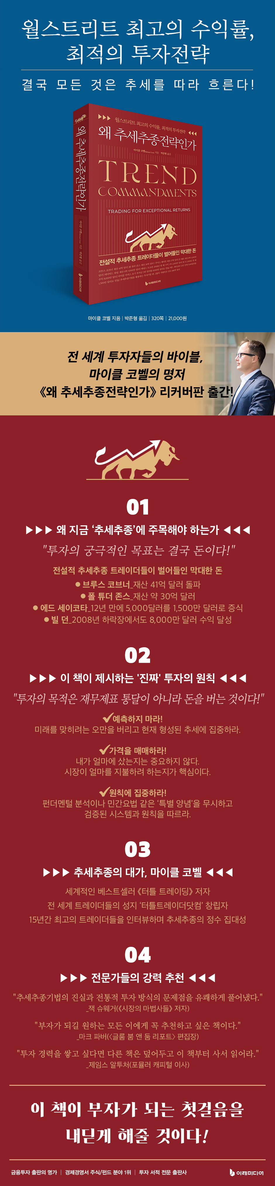 ¼¼°èÀûÀÎ º£½ºÆ®¼¿·¯ ¡¶ÅÍÆ² Æ®·¹À̵ù¡· ¡¶Ãß¼¼ÃßÁ¾ ÅõÀÚÀü·«¡· ¡¶Ãß¼¼ ¸Å¸ÅÀÇ ´ë°¡µé¡·ÀÇ ÀúÀÚÀÌÀÚ ¡®ÅÍÆ²Æ®·¹ÀÌ´õ´åÄÄ(turtletrader.com)¡¯ÀÇ Ã¢¸³ÀÚÀÎ ¸¶ÀÌŬ ÄÚº§ÀÌ 15³â°£ ¶Ù¾î³ Ãß¼¼ÃßÁ¾ Æ®·¹ÀÌ´õµé°úÀÇ ÀÎÅͺ並 ÅëÇØ Ãß¼¼ÃßÁ¾±â¹ýÀÇ Áø½Ç°ú ÀüÅëÀû ÅõÀÚ ¹æ½ÄÀÇ ¹®Á¦Á¡À» À¯ÄèÇÏ°Ô Ç®¾î³Â´Ù. ÀÌ Ã¥Àº Ãß¼¼ÃßÁ¾±â¹ýÀÌ ¹«¾ùÀÎÁö¿¡ ´ëÇØ °¡Àå ½±°í ¸íÄèÇÏ°Ô ¼³¸íÇÑ´Ù. Ãß¼¼ÃßÁ¾Àü·«¿¡ ´ëÇØ ¾Ë°í ½ÍÀº »ç¶÷À» ºñ·ÔÇØ Å« ¸®½ºÅ©¸¦ ÇÇÇÏ¸é¼ °¡´ÉÇÑ ÇÑ ¸¹Àº µ·À» ¹ú°í ½ÍÀº »ç¶÷, ´õºÒ¾î Ãß¼¼ÃßÁ¾ Æ®·¹ÀÌ´õµéÀÇ »ç°í¹æ½Ä°ú ¶Ù¾î³ ¼öÀÍ¿¡ ¸Å·áµÈ »ç¶÷À̶ó¸é ÀÌ Ã¥À» ²À ÀоîºÁ¾ß ÇÑ´Ù. ÅõÀÚ¿¡ ´ëÇÑ »õ·Î¿î ¾ÆÀ̵ð¾î¿Í ÀڽۨÀ» ¿øÇϴ°¡? ÀÌÁ¦ ½ÃÀåÀÇ Ãß¼¼¸¦ µû¸£¶ó!