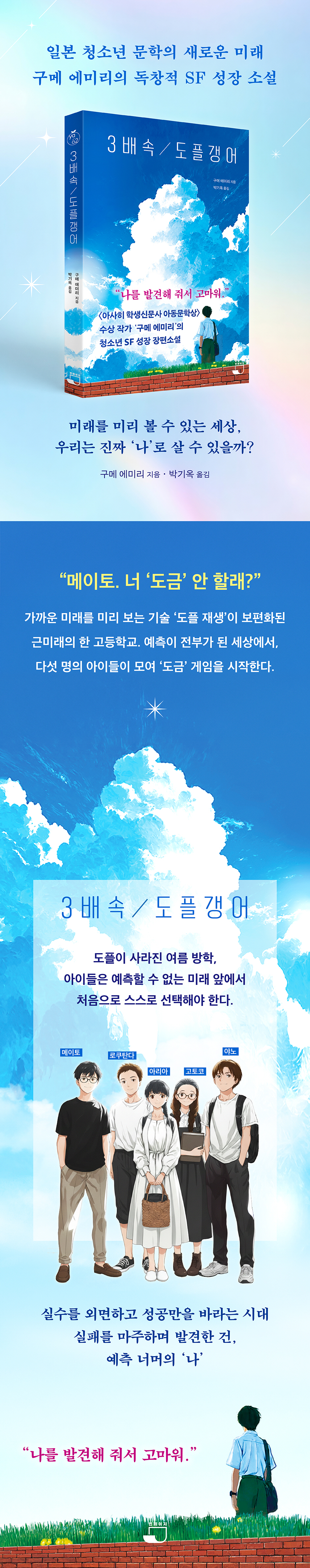 ?¾Æ»çÈ÷ Çлý½Å¹®»ç ¾Æµ¿¹®Çлó?°ú ?¿ì¾²³ë¹Ì¾ß ¾î¸°ÀÌ»ó? ¼ö»ó ÀÛ°¡ÀÌÀÚ ÃÖ±Ù ÁÖ¸ñ¹Þ´Â ÀϺ» ÀÛ°¡ÀÎ ±¸¸Þ ¿¡¹Ì¸®ÀÇ Ã»¼Ò³â SF ¼ºÀå ÀåÆí¼Ò¼³ÀÌ ºóÆäÀÌÁöÀÇ YA ¼Ò¼³ ½Ã¸®Áî µÎ ¹øÂ° ÀÛǰÀ¸·Î Ãâ°£µÇ¾ú´Ù. SFÀû »ó»ó·ÂÀÌ Ã»¼Ò³â ¼ºÀå¼Ò¼³°ú °áÇÕµÈ ÀÛǰÀÎ ¡¶3¹è¼Ó µµÇð»¾î¡·´Â ´Ü¼øÇÑ ¿À¶ô¹°À» ³Ñ¾î µ¶ÀÚ ½º½º·Î¸¦ µ¹¾Æº¸°Ô ¸¸µå´Â ÈûÀ» º¸¿©ÁØ´Ù.