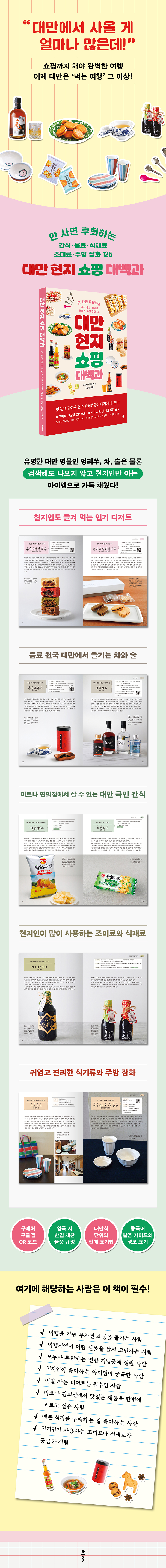 ¡¶´ë¸¸ ÇöÁö ¼îÇÎ ´ë¹é°ú¡·´Â ´Ù¸¥ ¿©Çà Ã¥¿¡¼´Â ¾ÆÁÖ °£·«ÇÏ°Ô ¼Ò°³ÇÏ´Â ´ë¸¸ Çʼö ¼îÇÎÅÛÀ» ÇÑ ±ÇÀ¸·Î ´Ù·é´Ù. ±×¸¸Å µðÀúÆ®, Á¶¹Ì·á, ½ÄÀç·á, °£½Ä, ÁÖ¹æ ÀâÈ, ½Ä±â µî ¾îµð¼µµ ¼Ò°³ÇØÁÖÁö ¾Ê¾Ò´ø ¾ÆÁÖ ´Ù¾çÇÑ ¾ÆÀÌÅÛÀ» ¸¸³ªº¼ ¼ö ÀÖ¾î »õ·Î¿î Á¦Ç°À» ¾Ë¾Æ°¡´Â Àç¹Ì¸¦ ´À³¥ ¼ö ÀÖ´Ù. Æã¸®¾¥, Â÷, ¼úó·³ ´ë¸¸ ´ëÇ¥ ±â³äǰµµ ¿ì¸®³ª¶ó¿¡ ¾Ë·ÁÁöÁö ¾ÊÀº Á¦Ç°µéÀ» ÁÖ·Î ¼Ò°³Çϱ⠶§¹®¿¡ »·ÇÏ´Ù´Â »ý°¢ÀÌ µéÁö ¾Ê´Â´Ù.