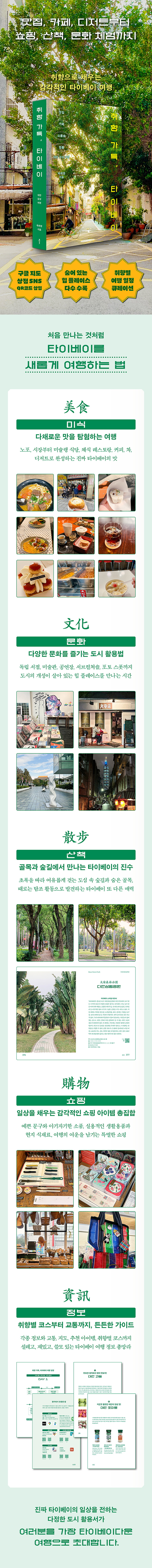 ÀÌ Ã¥Àº ÀÌ·¯ÇÑ ´Ùä·Î¿î µµ½Ã¸¦ ¡®ÃëÇ⡯À̶ó´Â Ű¿öµå·Î Å¥·¹À̼ÇÇÑ »õ·Î¿î µµ½Ã Ȱ¿ë¼´Ù. ´ë¸¸À» Áø½ÉÀ¸·Î »ç¶ûÇÏ´Â ÀúÀÚ´Â °ÅÁÖ ½ÃÀý ÀÚÁÖ Ã£´ø Àå¼Ò¿Í ¸Å³â »õ·Ó°Ô ¹ß±¼ÇÑ °÷, ÇöÁöÀο¡°Ô ¿À·§µ¿¾È »ç¶û¹Þ¾Æ ¿Â °ø°£À» °í·ç ¼Ò°³ÇÑ´Ù. ¹Ì½Ä¡¤¹®È¡¤¼îÇΡ¤»êÃ¥¡¤Èü Ç÷¹À̽º¡¤Æ÷Åä ½ºÆý µî ´Ù¾çÇÑ Å׸¶·Î ³ª´« ±¸¼ºÀº ¿©ÇàÀÚ°¡ ÀÚ½ÅÀÇ ¼Óµµ¿Í °ü½É»ç¿¡ ¸ÂÃç ŸÀ̺£À̸¦ ŽÇèÇϵµ·Ï µ½´Â´Ù. ¸ðµç Àå¼Ò¿¡´Â ±¸±Û Áöµµ¿Í »óÁ¡ ȨÆäÀÌÁö·Î ¿¬°áµÇ´Â QRÄڵ尡 ¼ö·ÏµÇ¾î Ã¥ ÇÑ ±Ç¸¸À¸·Îµµ ¿©ÇàÀÌ ÇÑÃþ Æí¸®ÇØÁø´Ù.