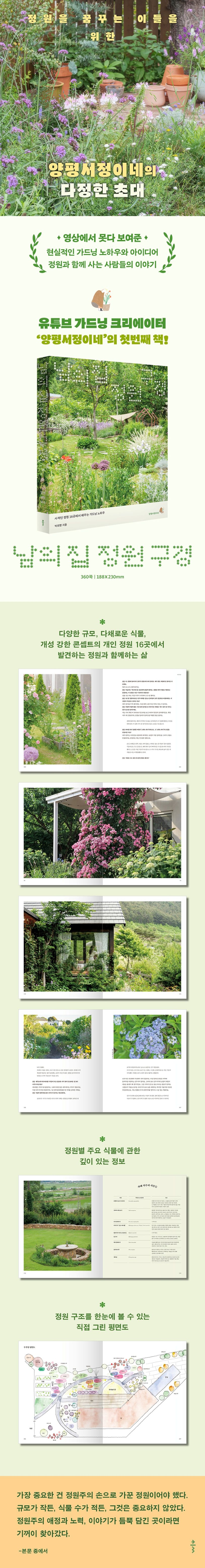 ¡¶³²ÀÇ Áý Á¤¿ø ±¸°æ¡·Àº À¯Æ©ºê °¡µå´× Å©¸®¿¡ÀÌÅÍ ¡®¾çÆò¼Á¤À̳ס¯ ¹ÚÈñ¿µÀÇ Ã¹¹øÂ° Ã¥ÀÌ´Ù. µû¶æÇÑ À̾߱â¿Í ¾Æ¸§´Ù¿î Á¤¿ø dz°æÀ¸·Î Å« »ç¶ûÀ» ¹Þ¾Æ¿Â, ´ÜÀÏ ¿µ»ó 100¸¸ ºä ÀÌ»óÀÇ ½Ã¸®Áî ¡®³²ÀÇÁýÁ¤¿ø½Ä¹°±¸°æ¡¯À» »õ·Ó°Ô ¿«¾ú´Ù. Á¤¿øÀ» °¡²Ù´Â À̵é°ú ¾ðÁ¨°¡ ÀڽŸ¸ÀÇ Á¤¿øÀ» ²Þ²Ù´Â À̵鿡°Ô ²À ÇÊ¿äÇÑ 16°÷ÀÇ ½Ç¿ëÀûÀÎ ³ëÇϿ츦 ÀüÇÑ´Ù.