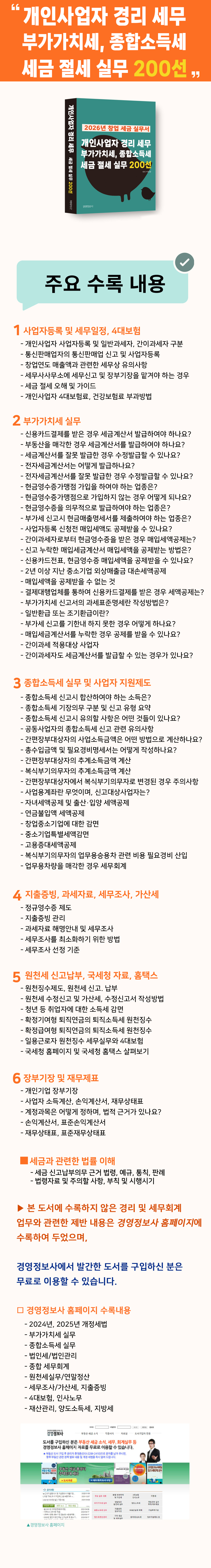 [4] ÀÌ Ã¥Àº ÀúÀÚ°¡ 20¿©³â °£ °æ¸®¼¼¹«½Ç¹« »ó´ã(ÀÌÁöºÐ°³, »ïÀÏÀÎÆ÷¸¶ÀÎ)À» ÇÏ¸é¼ ´ëÇ¥ÀÚ ¹× °æ¸®½Ç¹«ÀÚ°¡ ²À ¾Ë¾Æ¾ß¸¸ ÇÏ´Â ³»¿ë ¹× ¼¼¹«Àû ½Ç¼ö¸¦ ÇÏ¿© ¼¼±Ý ¹®Á¦·Î ³¶ÆÐ¸¦ °ÞÀ» ¼ö ÀÖ´Â »ç¾ÈµéÀ» »çÀü¿¡ ¹æÁöÇϱâ À§ÇÏ¿© Á¤¼ºÀ» ´ÙÇÏ¿© ÁýÇÊÇÑ µµ¼ÀÔ´Ï´Ù.