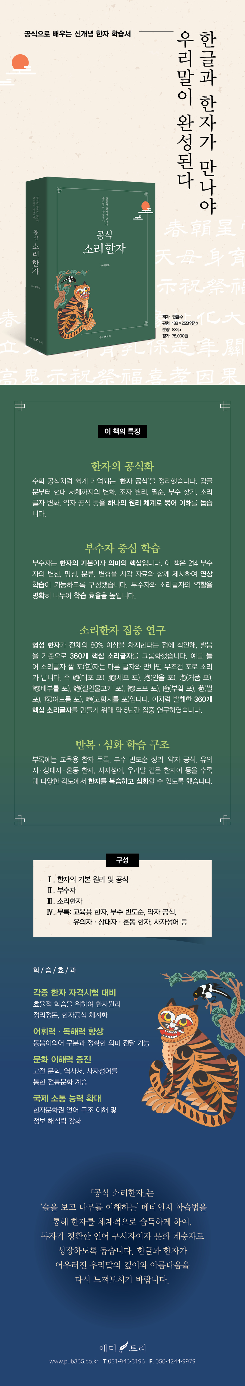 ºÎ¼öÀÚ´Â ÇÑÀÚÀÇ ±âº»ÀÌÀÚ ÀǹÌÀÇ ÇÙ½ÉÀÔ´Ï´Ù. ÀÌ Ã¥Àº 214 ºÎ¼öÀÚÀÇ º¯Ãµ, ¸íĪ, ºÐ·ù, º¯ÇüÀ» ½Ã°¢ ÀÚ·á¿Í ÇÔ²² Á¦½ÃÇÏ¿© ¿¬»ó ÇнÀÀÌ °¡´ÉÇϵµ·Ï ±¸¼ºÇß½À´Ï´Ù. ºÎ¼öÀÚ¿Í ¼Ò¸®±ÛÀÚÀÇ ¿ªÇÒÀ» ¸íÈ®È÷ ³ª´©¾î ÇнÀ È¿À²À» ³ôÀÔ´Ï´Ù.