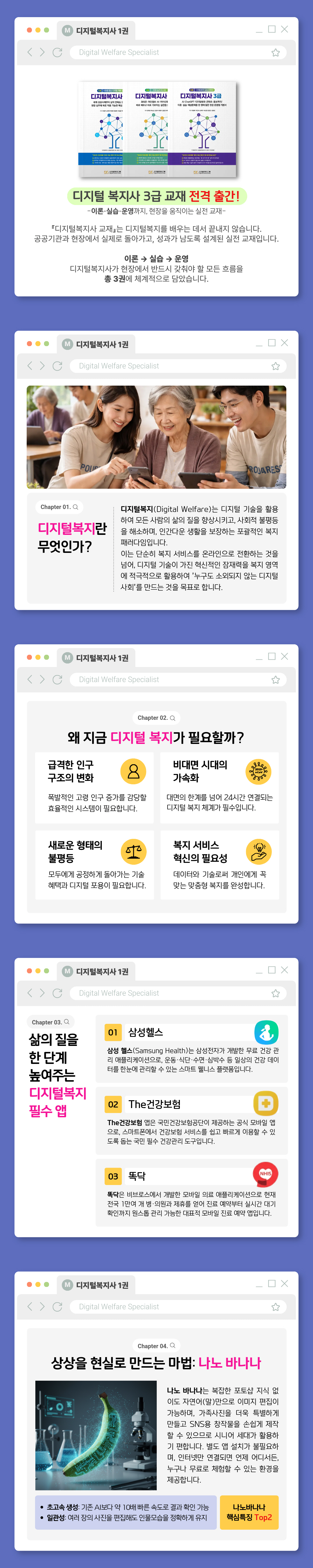 Ã¥Àº ¡®µðÁöÅк¹Áö»ç¡¯¶ó´Â ½ÅÁ÷¾÷ÀÇ Àǹ̸¦ ´Ü¼øÇÑ ±â¼ú ÁöµµÀÚ°¡ ¾Æ´Ñ, »ç¶÷ÀÇ »îÀ» ½ÇÁúÀûÀ¸·Î º¯È½ÃŰ´Â Àü¹® º¹Áö ÀÎÀç·Î Á¤ÀÇÇÕ´Ï´Ù. ´Ü¼øÈ÷ ½º¸¶Æ®ÆùÀ» °¡¸£Ä¡´Â °ÍÀÌ ¾Æ´Ï¶ó, ±â¼úÀ» ÅëÇØ ´©±º°¡ÀÇ »î¿¡ ¿¬°áµÇ°í, ÀÚ¸³°ú ¼ºÀåÀÇ °¡´É¼ºÀ» ¿©´Â µðÁöÅк¹Áö»çÀÇ ºñÀüÀ» ±×·Á³À´Ï´Ù.