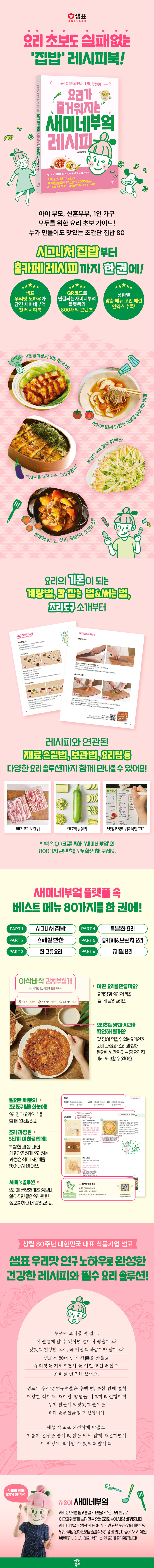 »õ¹Ì³×ºÎ¾ýÀÇ ·¹½ÃÇÇ´Â Á¶¸® °úÁ¤ÀÌ ÃÖ´ë 5´Ü°è¸¦ ³ÑÁö ¾Ê´Â´Ù. 2´Ü°è·Î Ãʰ£´ÜÇÏ°Ô ¿Ï¼ºµÇ´Â ·¹½ÃÇǵµ ÀÖ´Ù. ´©°¡ ¸¸µé¾îµµ ÃÖ¼ÒÇÑÀÇ Àç·á·Î ÃÖ´ëÀÇ ¸ÀÀ» ³¾ ¼ö ÀÖ´Â ·¹½ÃÇǸ¸ ¾ö¼±ÇÏ¿© ¼Ò°³ÇÏ´Â °ÍÀÌ Æ¯Â¡ÀÌ´Ù. ÀÌ Ã¥¿¡´Â »õ¹Ì³×ºÎ¾ý ·¹½ÃÇÇ Áß¿¡¼µµ ƯÈ÷ ¸¹Àº »ç¶ûÀ» ¹ÞÀº Áý¹äºÎÅÍ ¹ÝÂù, ÇÑ ±×¸© ¸Þ´º, Ưº°ÇÑ ¿ä¸®, ȨīÆä&ºê·±Ä¡, Á¦Ã¶ ¸Þ´º±îÁö ÇÑ ±Ç¿¡ ´ã¾Ò´Ù.
