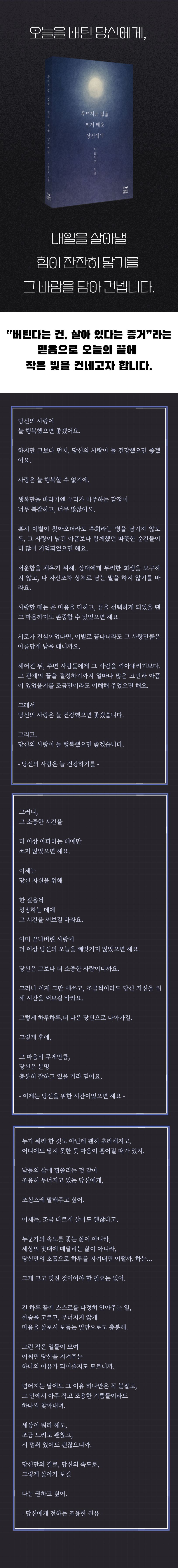 º°ÀÌ ¶ßÁö ¾Ê´Â ¹ã¿¡µµ »õº®Àº ã¾Æ¿Àµí, ÀÌ Ã¥ÀÇ ¹®ÀåµéÀÌ ¿À´ÃÀ» °ßµð´Â ´ç½Å¿¡°Ô ÀÛÀº ºûÀÌ µÇ±â¸¦ ¹Ù¶ø´Ï´Ù.