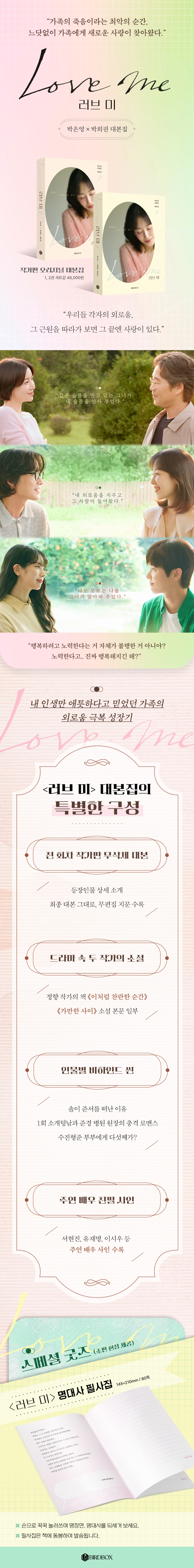 ¡´·¯ºê ¹Ì¡µ ´ëº»ÁýÀº ÀÛ°¡ÀÇ ÃÖÁ¾ ´ëº» ¹«»èÁ¦ÆÇÀ¸·Î ±¸¼ºµÇ¾ú´Ù. óÀ½ ±âȹ ´Ü°è¿¡¼ 16ºÎÀÛÀ̾ú´ø À̾߱Ⱑ 12ºÎÀÛÀ¸·Î ¾ÐÃàµÇ¸ç »èÁ¦µÇ°Å³ª ¼öÁ¤µÈ Àι° ¼³Á¤°ú Àå¸é, ¹æ¼Û¿¡¼´Â º¼ ¼ö ¾ø¾ú´ø ¹Ì°ø°³ ¾ÀµéÀÌ ÇÔ²² ¼ö·ÏµÅ ÀÖ´Ù. ¶ÇÇÑ µå¶ó¸¶¿¡¼ Áß¿äÇÑ ¼ÒÀç·Î »ç¿ëµÇ´Â Á¤Çâ ÀÛ°¡ Ã¥ ¡¶ÀÌó·³ Âù¶õÇÑ ¼ø°£¡·°ú ¡¶°¡¸¸ÇÑ »çÀÌ¡· ÀϺθ¦ ÇÔ²² ½Ç¾î, µå¶ó¸¶ ¼Ó Àι°µéÀÌ ÀÐ°í ¾²´ø ¹®ÀåÀ» µ¶ÀÚµµ Á÷Á¢ ¸¶ÁÖÇÒ ¼ö ÀÖ°Ô Çß´Ù. ÀÌó·³ ¹æ¼Û¿¡¼± °ø°³µÇÁö ¾ÊÀº À̾߱âµéÀ» »ìÆìº¸¸é, ¡´·¯ºê ¹Ì¡µÀÇ ¼¼°è¸¦ ´õ¿í ÀÔüÀûÀ¸·Î ÀÌÇØÇÏ´Â ½Ã°£ÀÌ µÉ °ÍÀÌ´Ù.
