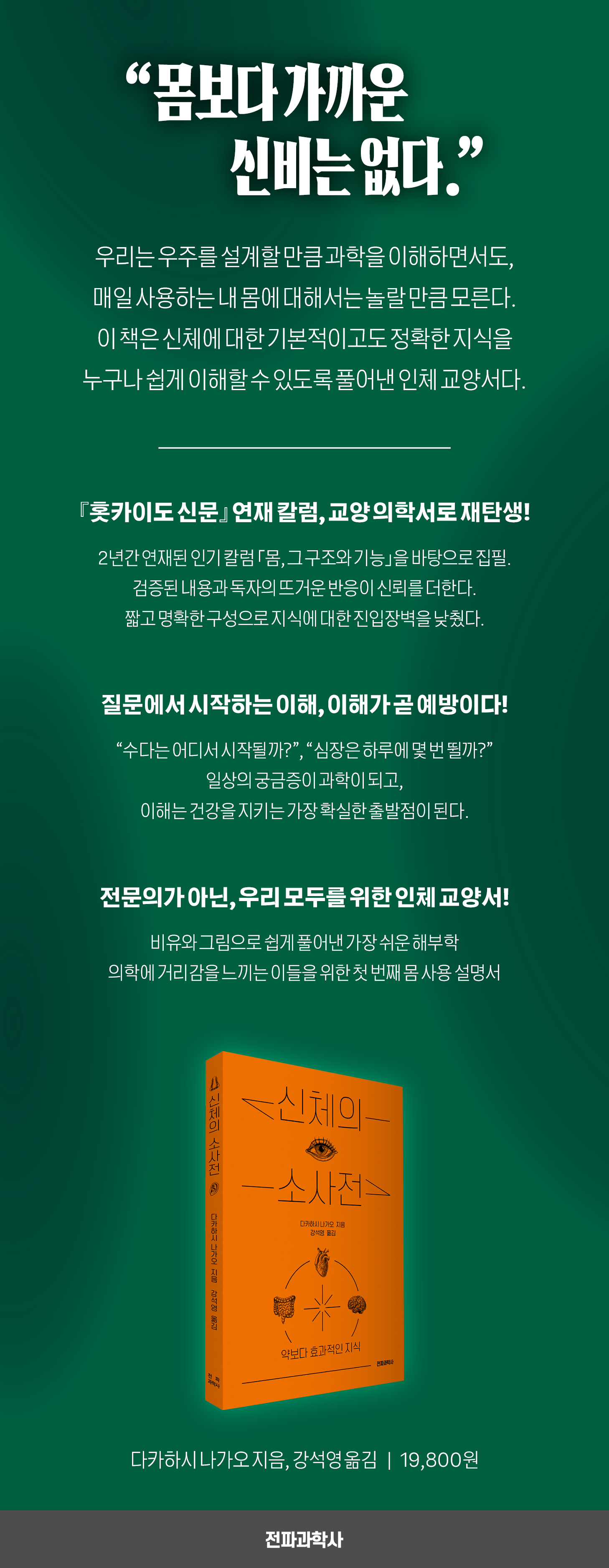 »ç¶÷Àº Æò»ý ¸î °¡Áö ÀÏÀ» ±â¾ïÇÒ ¼ö ÀÖÀ»±î? ÇÏ·ç µ¿¾È ÄÚ¿¡¼ Áõ¹ßÇÏ´Â ¹°ÀÇ ¾çÀº ¾ó¸¶³ª µÉ±î? ÀÌ Ã¥Àº Çö´ë ÀÇÇÐÀÌ ¹àÇô³½ ÀÎüÀÇ ½Åºñ¿Í Èï¹Ì·Î¿î »ç½Çµé·Î °¡µæÇÏ´Ù. ¿ì¸® ¸ö¿¡ ¼û°ÜÁø ³î¶ó¿î ºñ¹ÐÀÌ ´ã±ä, ½º¸¶Æ®ÇÑ ÈÁ¦ÀÇ º¸°í¼´Ù.