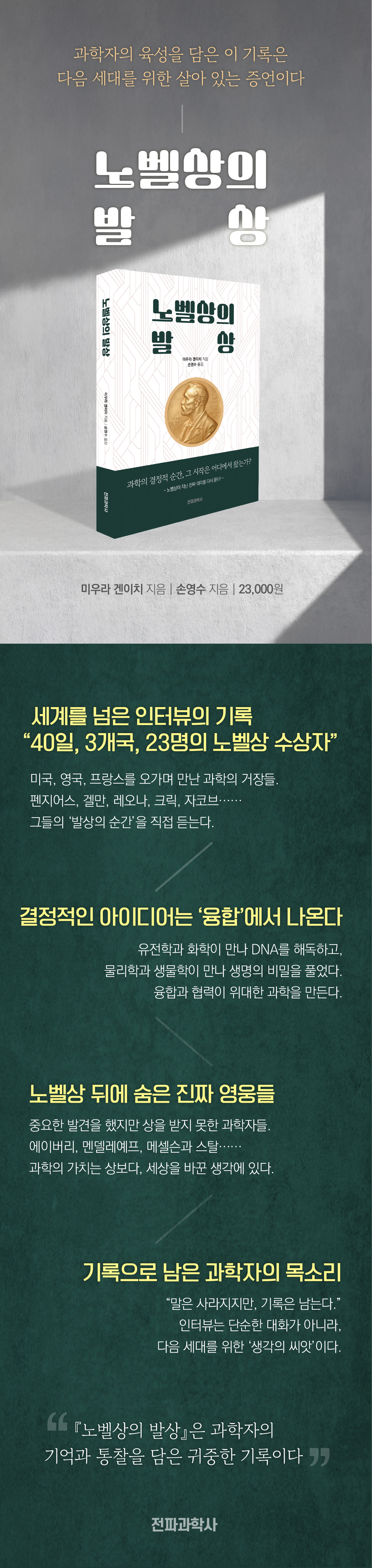ÀúÀÚ´Â ³ëº§»óÀÇ ¿µ±¤»Ó ¾Æ´Ï¶ó, ¸Þ¼¿½¼°ú ½ºÅ», ¿¡À̹ö¸®, ¸àµ¨·¹¿¹ÇÁó·³ »óÀ» ¹ÞÁö ¸øÇßÁö¸¸ ¿ª»ç¿¡ ±íÀÌ °¢ÀÎµÈ ÁÖÀΰøµéÀÇ À̾߱â±îÁö ´ã´Â´Ù. ¹ß»óÀÇ ¼ø°£ºÎÅÍ ½ÇÇè °úÁ¤, ±×¸®°í ¿¬±¸¸¦ À̲ô´Â Áý³ä±îÁö, ÇÑ ±Ç ¼Ó¿¡ 20¼¼±â °úÇÐÀÇ °áÁ¤Àû ¼ø°£µéÀÌ ÆîÃÄÁø´Ù.