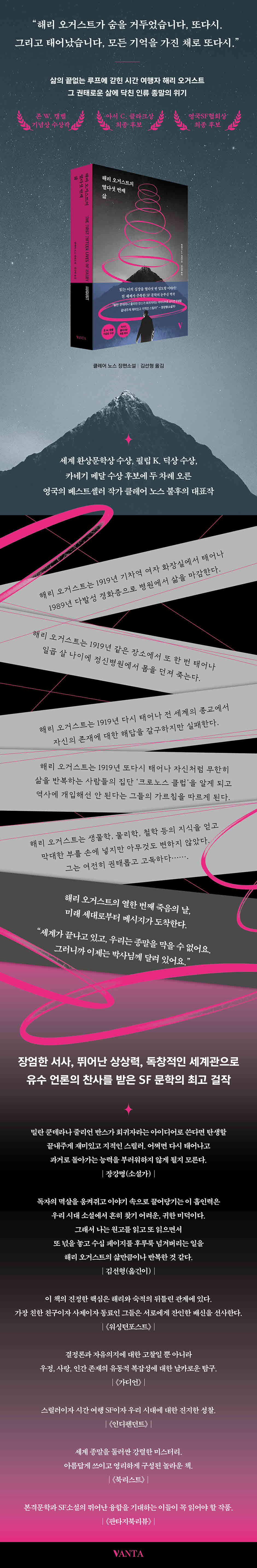 ¹æ´ëÇÑ ºÐ·®°ú °Å´ëÇÑ ¼»çÀû ½ºÄÉÀÏ, ¡®Á¦2Â÷ ¼¼°è´ëÀü ÀüÈÄ À¯·´¡¯À̶ó´Â ¹è°æ¿¡¼ ¿À´Â ½É¸®Àû °Å¸®°¨¿¡µµ ¡°ÁøÂ¥ ¹ÌÄ£ Ã¥¡±, ¡°°á¸»À» º¸±â À§ÇØ »õº®±îÁö ´Þ·È´Ù¡±, ¡°¹Ýµå½Ã À̸§À» ±â¾ïÇØ³õ¾Æ¾ß ÇÒ ÀÛ°¡¡± µîÀÇ Âù»ç¸¦ ²ø¾î³»¸ç µ¶ÀÚ¸¦ ¸Å·á½ÃŲ ½Ã°£ ¿©Çà SF ½º¸±·¯ ¡¶Çظ® ¿À°Å½ºÆ®ÀÇ ¿´Ù¼¸ ¹øÂ° »î¡·ÀÌ ¹ÝŸ¿¡¼ ÀçÃâ°£µÇ¾ú´Ù. ±â¾ï°ú Á¤Ã¼¼º, °úÇаú À±¸®ÀÇ ¹®Á¦¸¦ ½ÉÃþÀûÀÎ ±¸¼ºÀ¸·Î ´Ù·ï ¼¼°è À¯¼ö ¾ð·ÐÀÇ Âù»ç¸¦ ¹Þ¾ÒÀ¸¸ç ¼¼°è 3´ë SF ¹®ÇлóÀ¸·Î ²ÅÈ÷´Â Á¸ W. Ä·º§ ±â³ä»óÀ» ¼ö»óÇÏ°í ¾Æ¼ C. Ŭ¶óÅ©»ó ¹× ¿µ±¹SFÇùȸ»ó ÃÖÁ¾ Èĺ¸¿¡ ¿À¸¥ ÀÌ ÀÛǰÀº ±¹³» Ãâ°£ ÀÌÈÄ ÀÔ¼Ò¹®À¸·Î ²ÙÁØÈ÷ »ç¶û¹Þ¾Æ Áö¼ÓÀûÀÎ ÀçÃâ°£ ¿äûÀÌ À̾îÁ® ¿Ô´Ù.