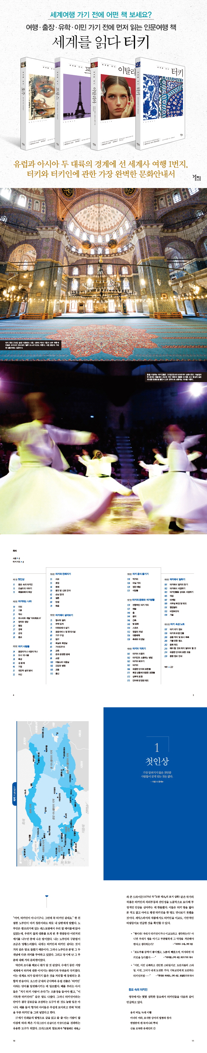¡®¼¼°è¸¦ Àд١¯¶ó´Â Àι®¿©Çà ½Ã¸®Áî ¸íÀ¸·Î Ãâ°£µÇ´Â ù ¹øÂ° Ã¥ÀÌ´Ù. ÀÌ ½Ã¸®Áî ¡®¼¼°è¸¦ Àд١¯´Â À¯¸í ¿©ÇàÁö Áß½ÉÀÇ ±âÁ¸ ¼¼°è¿©Çà Á¤º¸¼µé°ú´Â ´Þ¸® ±×°÷ÀÇ »ç¶÷°ú »î¿¡ ÃÊÁ¡À» ¸ÂÃá º»°Ý ¼¼°è¹®È ¾È³»¼·Î¼, ¿ÜÁöÀεéÀÌ Ã³À½ °¡º¸°í´Â Æ÷ÂøÇϱ⠾î·Á¿î ±× ³ª¶óÀÇ ¿ª»ç¿Í ¹®È, »ýȰȯ°æ°ú °ü½À¿¡ °üÇÑ ¹æ´ëÇÑ Áö½Ä°ú ÇØ¼³À» ´Ù·é´Ù. ¡º¼¼°è¸¦ ÀдÙ-ÅÍŰ¡» ÆíÀº ÅÍŰ¿¡¼ Á÷Á¢ »ì¾Æº» ¿µ±¹ÀÎ ÀúÀÚ°¡ ½á¼ Á¤º¸´Â ´õ¿í »ý»ýÇÏ°í ±ÛÀº »ýȰ ¿¡¼¼ÀÌó·³ ½±°Ô ÀÐÈù´Ù. À¯·´°ú ¾Æ½Ã¾Æ µÎ ´ë·úÀÇ °æ°è¿¡¼ ¿ª»ç»ó °¡Àå °Å´ëÇÑ Á¦±¹(¿À½º¸¸ Á¦±¹)À» ÀÌ·ç¾ú´ø ÅÍŰÀÎÀÇ »Ñ¸®¿¡¼ºÎÅÍ Ãâ¹ßÇØ µ¿¾çÀûÀÎ °Í°ú ¼¾çÀûÀÎ °Í, À̽½¶÷°ú ±âµ¶±³ ¹®È, ÄÉ¹ä °¡°Ô¿Í ÃÖ°í±Þ ·¹½ºÅä¶û µî ¼·Î ÀÌÁúÀûÀÎ °ÍµéÀÌ °øÁ¸ÇÏ¸ç ´õ¿í ¿ªµ¿ÀûÀ¸·Î º¯¸ðÇØ°¡´Â ÅÍŰÀÇ ¿À´Ã°ú ±× À̸éÀÇ À̾߱âµéÀ» ¼Ó¼ÓµéÀÌ ÀüÇØÁØ´Ù. ¿©ÇࡤÃâÀ塤À¯ÇС¤À̹ΠµîÀÇ ¸ñÀûÀ¸·Î ÅÍŰ¿¡ ¹æ¹®ÇÒ °èȹÀÌ ÀÖ´Â »ç¶÷µé¿¡°Ô´Â ¹Ýµå½Ã ÇÊ¿äÇÑ »ýȰ¹®È Á¤º¸¼À̸ç, Æò¼Ò ÅÍŰÀÇ ¹®È¿Í dz½À¿¡ °ü½ÉÀÌ ¸¹¾Ò´ø »ç¶÷µé¿¡°Ôµµ ÀûÀýÇÑ ±³¾ç¼°¡ µÇ¾îÁÙ °ÍÀÌ´Ù.