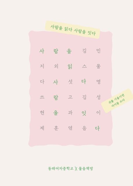 Ã¥¼Ò°³¡º»ç¶÷À» ÀдÙ, »ç¶÷À» ÀÕ´Ù¡»´Â µ¿·¡¿©ÀÚÁßÇб³ Àι®ÇÐ µ¿¾Æ¸® ¡®±Í¸¦ ±â¿ïÀ̸顯 ÇлýµéÀÌ ¾´ 26ÆíÀÇ µ¶¼ ¿¡¼¼À̸¦ ´ã¾Ò½À´Ï´Ù. µ¿¾Æ¸®¿¡¼´Â 2020³âÀÇ ÁÖÁ¦·Î ¡®»ç¶÷À» ÀдÙ, »ç¶÷À» ÀÕ´Ù¡¯·Î Á¤Çß½À´Ï´Ù. Ã¥À» ÅëÇØ ´Ù¾çÇÑ »ç¶÷°ú ±×µéÀÇ ½Ã´ë¸¦ ¸¸³ª, À̵éÀÌ ²Þ²Ù¾ú´ø Èñ¸Á, ½Ã´ëÀÇ º®¿¡ °¡·Î¸·Çû´ø Àý¸Á, ±×¸®°í ÀÌ µÑ »çÀ̸¦ ÀÕ±â À§ÇÑ ±×µéÀÇ ºÎ´ÜÇÑ ³ë·ÂÀ» ¸¸³ªº¸±â·Î Çß½À´Ï´Ù. ±×¸®°í ¿ì¸®°¡ ¸¸³ Ã¥ ¼ÓÀÇ Àι°°ú »îÀ» ÅëÇØ ¿ì¸® ÀÚ½ÅÀ» ¹ß°ßÇϰíÀÚ Çß½À´Ï´Ù.