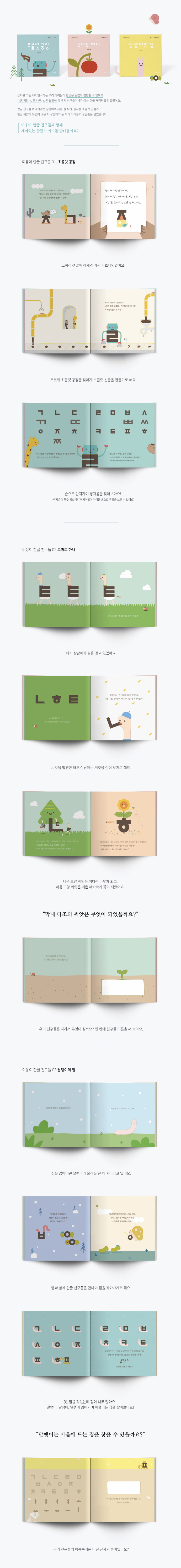 ±ÛÀÚ¸¦ ±×¸²À¸·Î ÀνÄÇÏ´Â À¯¾Æ±âÀÇ ¾ÆÀ̵éÀ» À§ÇØ ÇѱÛÀ» ¹è¿ì´Â ±³À°À» ½ÃÀÛÇϱ⠾ռ âÀÇÀûÀÎ ÇÑ±Û ³îÀ̸¦ ÇÒ ¼ö ÀÖµµ·Ï ÇÑ±Û Ä³¸¯ÅÍ·Î ¸¸µé¾ú½À´Ï´Ù. ÀÌÀÀÀÌ ÇÑ±Û µ¿ÈÃ¥À» º¸¸ç ÇѱÛÀ» ÀÚ¿¬½º·´°í Àç¹ÌÀÖ°Ô Á¢ÇÒ ¼ö ÀÖ½À´Ï´Ù. ÀÌÀÀÀÌ ÇÑ±Û Ä£±¸µéÀº <ÃÊÄݸ´ °øÀå>, <Å丶Åä Çϳª>, <´ÞÆØÀÌÀÇ Áý>À¸·Î ±¸¼ºµÇ¾îÀÖ½À´Ï´Ù.