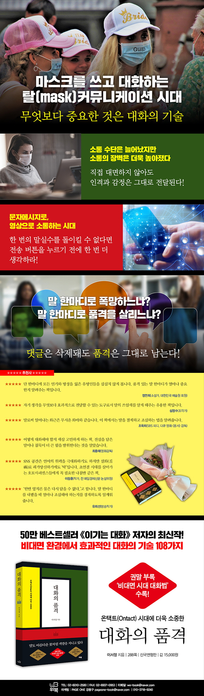 ¸»Àº ±× »ç¶÷ÀÇ Ç°°ÝÀÌ´Ù¡¯¶ó´Â ½Å³äÀ» °¡Áö°í ¿À·§µ¿¾È ȼú, ´ëȹý Àü¹® ÀÛ°¡·Î Ȱµ¿ÇØ¿À°í ÀÖ´Ù. ±¹³»¿¡ ȼú ºÐ¾ß¿¡ ´ëÇÑ Á¤º¸°¡ °ÅÀÇ ¾ø´ø ½ÃÀýºÎÅÍ ´ëȹý °ü·Ã ÀÚ±â°è¹ß¼¸¦ ±âȹÇÏ°í ¿¬±¸Çϸç ÁýÇÊÇß´Ù. ±×Áß ¡¶À̱â´Â ´ëÈ¡·´Â º£½ºÆ®¼¿·¯ ÀÌÀÚ ½ºÅ׵𼿷¯·Î 50¸¸ µ¶Àڵ鿡°Ô ¼±ÅÃÀ» ¹Þ¾Ò´Ù. ÇöÀç´Â °©ÀÛ½º·´°Ô ¸ÂÀÌÇÏ°Ô µÈ ¿ÂÅÃÆ®(Ontact, ¿Â¶óÀÎÀ¸·Î ´ë¸é) ½Ã´ë¿¡ ´ëÈÀÇ ±â¼úÀÌ ´õ¿í Áß¿äÇÏ´Ù´Â »ý°¢À¸·Î ºñ´ë¸é ½Ã´ëÀÇ ¼ÒÅëµÉ ´ëȹý¿¡ ´ëÇÑ °í¹ÎÀ» Çϰí ÀÖ´Ù. ¡®ÀÇ»ç¼ÒÅë¿¡ Á¦ÇÑÀû ÀÏ ¼ö¹Û¿¡ ¾ø´Â ºñ´ë¸é ´ëȸ¦ ¸Å²ô·´°Ô À̲ø¾î°¡±â À§ÇØ ¾î¶»°Ô ÇØ¾ß Çұ¶ó´Â ¹®Á¦¿¡ ´ëÇÑ ÇØ°áÃ¥ÀÇ ÀϺθ¦ ÀÌ Ã¥ÀÇ ºÎ ·ÏÀ¸·Î ½Ç¾ú´Ù. ÁÖ¿ä Àú¼·Î ¡¶ÀÏ±Þ ´ëÈ¡·, ¡¶ÄÚÆ®¶ó¿Í ÇÔ²² ÇÏ ´Â À̰ÍÀÌ Çù»óÀÌ´Ù¡·, ¡¶¸¶¹ýÀÇ ºñÁî´Ï½º ȼú¡·, ¡¶¼¼»ó¿¡¼ °¡Àå µè°í ½ÍÀº À§·ÎÀÇ ¸»¡·, ¡¶Áöµ¶ÇÏ°Ô ¸Å´Þ·Á¶ó¡·, ¡¶10³â¸¸ Àþ¾úÀ¸¸é ²À ÇØ¾ß µÉ 54°¡Áö¡· µîÀÌ ÀÖ´Ù.
