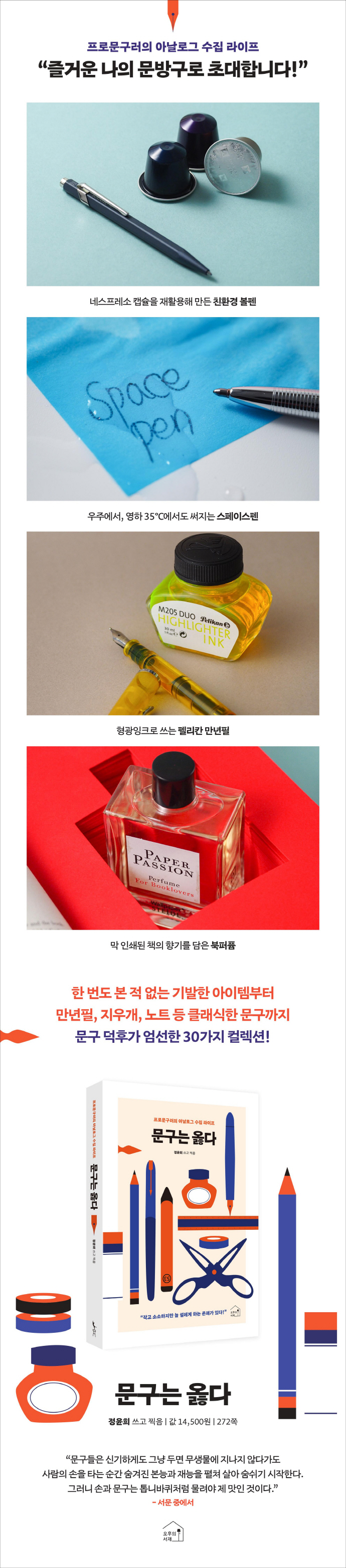 ´ÙÀ̾¸¦ ¿¹»Ú°Ô ²Ù¹Ì´Â ¡®´Ù²Ù¡¯°¡ À¯ÇàÀ̰í, ºóƼÁö ¿¬ÇÊÀ» Àü¹®ÀûÀ¸·Î ÆÇ¸ÅÇÏ´Â ÆíÁý¼óÀÌ »ý°å´Ù. ¼Á¡¿¡´Â Ææ°ú ´Ù¾çÇÑ ¿ëǰÀ» ÆÄ´Â ¹®±¸ Äڳʰ¡ ´Ã ºÏÀûÀδÙ. ¡®¹®±¸ÀÇ Àü¼º½Ã´ë¡¯°¡ µµ·¡ÇÑ °ÍÀÌ´Ù. ¡®±Û ¾²°í »çÁø Âï´Â¡¯À̶ó°í ¹ÚÈù ¸íÇÔÀ» »ç¿ëÇÏ´Â ÀÛ°¡ Á¤À±Èñ. ¹æ¼ÛÀÛ°¡, ¾ó¸®¾î´äÅÍ ±×¸®°í Ä«¸®½º¸¶ ³ÑÄ¡´Â Æ÷Åä±×·¡ÆÛÀÌÀÚ ¿©ÇàÀÛ°¡·Î ¾Ë·ÁÁø ±×³à. ÇÏÁö¸¸ ÁøÂ¥ ±×³à¸¦ Àß ¾Æ´Â »ç¶÷µéÀº ÇѰᰰÀÌ ÇÑ ´Ü¾î·Î ±×³à¸¦ Á¤ÀÇÇÑ´Ù. ¡®ÇÁ·Î¹®±¸·¯¡¯. ¾î¸± ÀûºÎÅÍ Ææ°ú ¹®±¸¿¡ À¯³È÷ ¸Å·ÂÀ» ´À²¼´ø ±×³à´Â Æ÷Åä±×·¡ÆÛ¿Í ¿©ÇàÀÛ°¡¶ó´Â Á÷¾÷À» ¸¸³ª¸ç ¹®±¸ ¼öÁý°¡·Î¼ÀÇ »ýȰ¿¡ ÀÏ´ë Àü¼º±â¸¦ ¸ÂÀÌÇÏ°Ô µÈ´Ù. ¸¸³âÇÊ, ¹®Áø°ú ºÏ¿£µå, Æ÷½ºÆ®ÀÕ°ú ¼öÁ¤Å×ÀÌÇÁ¿¡ Áö¿ì°³, Ä¿ÅÍ Ä®±îÁö¡¦ ¾ÖÀåǰÀº ½×¿©°¬°í ±×³à¸¸ÀÇ ¹®¹æ±¸ ¶ÇÇÑ Ä¿Á®°¬´Ù. ÇÏÁö¸¸ Àü ¼¼°è¸¦ ¿©ÇàÇϸç, ¶§·Î´Â ÇØ¿ÜÁ÷±¸¸¦ ÇØ¼¶óµµ Á¤À±Èñ ÀÛ°¡°¡ ¼öÁýÇØ¿Â °Ç ´Ü¼øÈ÷ ¹°°ÇÀ¸·Î¼ÀÇ ¡®¹®±¸¡¯°¡ ¾Æ´Ï´Ù. ±×³à´Â ¹®±¸ ÇϳªÇϳª¿¡´Â ºê·£µå È÷½ºÅ丮¿¡¼ºÎÅÍ ÀÚ½ÅÀÇ »ç¿¬±îÁö, ¼ö¸¹Àº À̾߱ê°Å¸®°¡ ´ã°Ü ÀÖ´Ù. ¡®¸¹ÀÌ ¸ðÀº »ç¶÷¡¯º¸´Ù ¡®¸¹ÀÌ ÁÁ¾ÆÇÏ°í¡¯ ¡®¸¹ÀÌ ¾Ë°í Àִ¡¯ ¼öÁý°¡°¡ µÇ°í ½Í¾ú±â ¶§¹®ÀÌ´Ù. ±×³à´Â ÀڽŸ¸ÀÇ ¾ÖÀåǰ Áß¿¡¼µµ ƯÈ÷ ¾ÖÁ¤ÇÏ´Â, Ưº°ÇÑ Ãß¾ïÀÌ ´ã±ä ¹®±¸ 30°³¸¦ ¼±Á¤ÇØ Á÷Á¢ ¾´ ±Û°ú Á÷Á¢ ÃÔ¿µÇÑ »çÁøÀ¸·Î ÇÑ ±ÇÀÇ ¿¡¼¼ÀÌ ¡¶¹®±¸´Â ¿Ç´Ù¡·¸¦ Æì³Â´Ù.