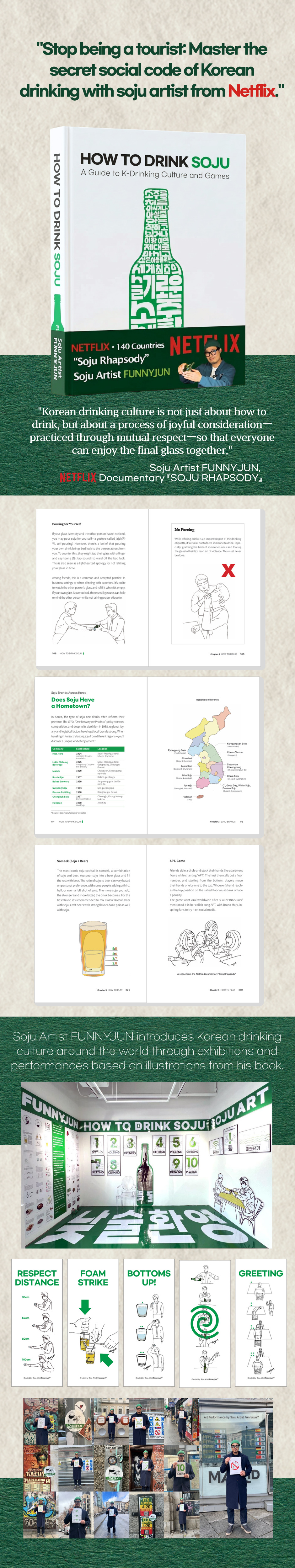 In his book How to Drink Soju (Korean title: Wise Soju Life), Soju Artist FUNNYJUN-featured in the Netflix documentary Soju Rhapsody-decodes this unique culture for the global audience.