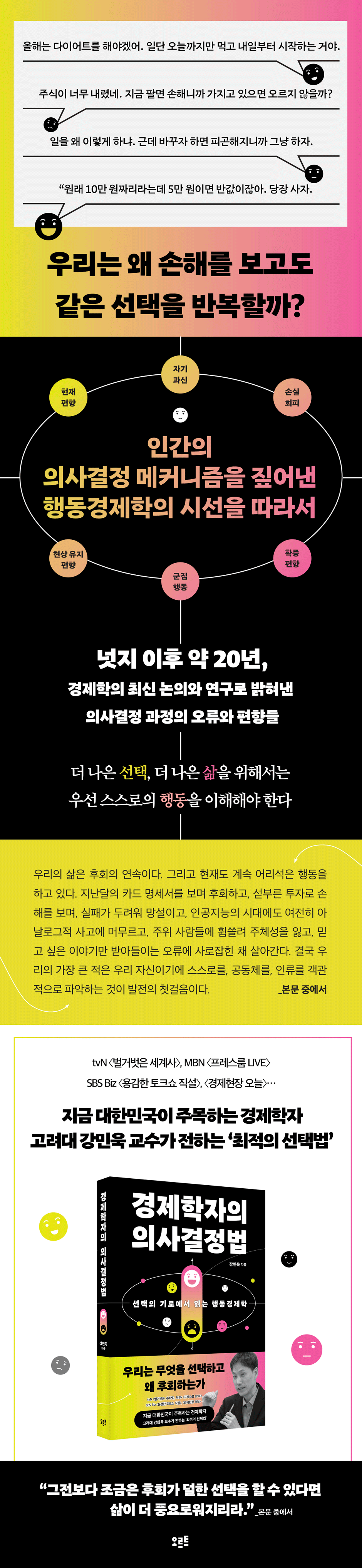 ¿ì¸®´Â ´Ã 'ÇÕ¸®Àû'ÀÎ ÀÇ»ç°áÁ¤À» Çϱâ À§ÇØ ³ë·ÂÇÑ´Ù. ÇÏÁö¸¸ ¿ì¸®ÀÇ º»´ÉÀº ±×¸® ÇÕ¸®ÀûÀÌÁö ¾Ê´Ù. ±ÍÂ÷´ÏÁò¿¡ ºüÁø ¿ì¸®´Â ½º½º·Îµµ ¸ð¸£´Â »çÀÌ¿¡ ¿À·ù¿Í ÆíÇâÀ» ÀÏÀ¸Å°°í, ±×·¯´Ù º¸¸é Àǵµ¿Í´Â ´Ù¸¥ °áÁ¤À¸·Î À̾îÁö´Â °æ¿ì°¡ ¸¹´Ù. ÇÕ¸®Àû ÀÇ»ç°áÁ¤ ¹æ¹ý¿¡ ´ëÇØ ¿¬±¸ÇØ ¿Â °í·Á´ë °æÁ¦ÇаúÀÇ °¹Î¿í ±³¼ö´Â ÀÌ Ã¥À» ÅëÇØ Çൿ°æÁ¦ÇÐÀÇ ½Ã°¢¿¡¼ ¿ì¸®ÀÇ ÀÇ»ç°áÁ¤ °úÁ¤À» ¤¾î º¸°í ÃÖ´ëÇÑ ÈÄȸ ¾ø´Â ¼±ÅÃÀ» ÇÒ ¼ö ÀÖ´Â ¹æ¹ýÀ» Á¦½ÃÇÑ´Ù.