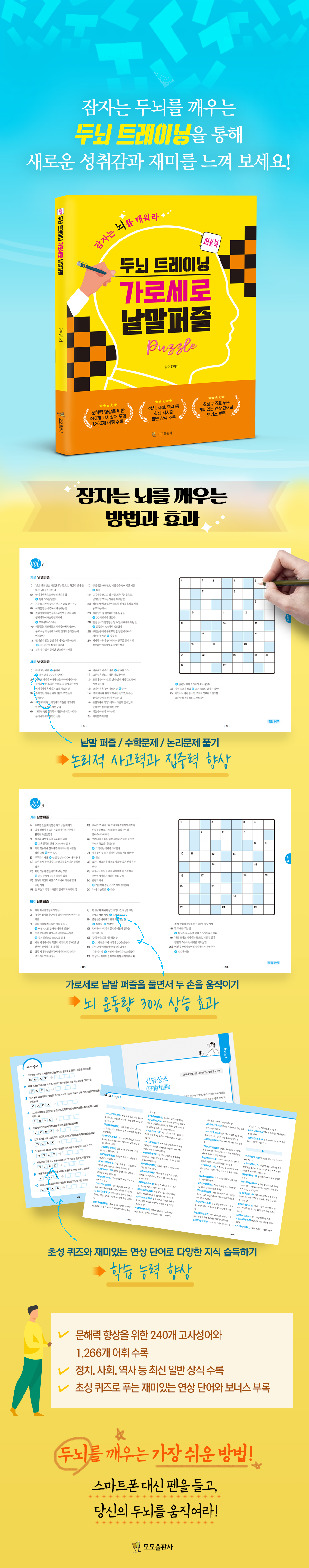 ¡ºµÎ³ú Æ®·¹ÀÌ´× °¡·Î¼¼·Î ³¹¸»ÆÛÁñ¡»Àº ´Ü¼øÇÑ ³¹¸» ¸ÂÈ÷±â ÆÛÁñÀÌ ¾Æ´Ï´Ù. µÎ³ú Ȱµ¿À» ÃÖÀûÈÇÏ´Â °úÇÐÀû ¿ø¸®¸¦ ¹ÙÅÁÀ¸·Î ±¸¼ºµÈ »ç°í·Â ÈÆ·Ã¼´Ù. ÀÌ Ã¥¿¡´Â ÃÑ 1,266°³ÀÇ ¾îÈÖ°¡ ¼ö·ÏµÇ¾î ÀÖÀ¸¸ç, ±×Áß 240°³´Â °í»ç¼º¾î·Î ±¸¼ºµÇ¾î ÀÖ´Ù. ÀÌ·¯ÇÑ ±¸¼ºÀº ´Ü¼øÈ÷ ´Ü¾î¸¦ ¸ÂÈ÷´Â °ÍÀ» ³Ñ¾î ÇϳªÇϳªÀÇ ¶æÀ» ÀÌÇØÇϰí Ȱ¿ëÇÒ ¼ö ÀÖµµ·Ï µ½´Â´Ù.