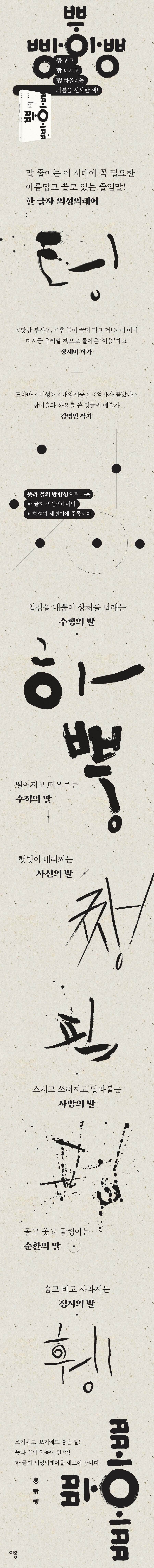 ´Þ¶û ÇÑ ±ÛÀÚ·Î ¼ö¸¹Àº ¶æ°ú ²ÃÀ» ¾Æ¿ì¸£´Â ÇÑ ±ÛÀÚ ÀǼºÀÇžî´Â ÇöÅÂ(Çö½Ç ÀÚ°¢ ŸÀÓ)À̳ª ÇÒ¸»ÇϾÊ(ÇÒ ¸»Àº ¸¹Àºµ¥ ÇÏÁö ¾Ê´Â´Ù)ó·³ ´Ü¼øÈ÷ ±ÛÀÚ ¼ö¸¸ ÁÙÀÎ ¸»ÀÌ ¾Æ´Ï¶ó ¿©·¯ ¶æÀ» µÎ·ç ǰÀº µ¿½Ã¿¡ ±× ¸ðµç ¶æ¿¡ °É¸ÂÀº Çü»óÀ» °®Ãá ±â¸·Èù ÁÙÀÓ¸»ÀÌ´Ù. 25ÂÊ ¡®1Àå ÇÏ È£ ÈÄ - ³»»Õ´Ù¡¯ Áß¿¡¼ ÀÌ Ã¥ÀÇ ¸ðµç ¸»ÀÌ ±×·¸µí ÇÏ, È£¿Í ÈÄÀÇ ¹æÇ⼺µµ ±× ¶æ°ú ²Ã¿¡¼ À¯ÃßÇß´Ù. ÀÔÀ» ±âÁ¡À¸·Î ÇßÀ» ¶§ ÀÔ±èÀ» ºÎ´Â ÇàÀ§´Â °í°³¸¦ ¼÷À̵ç Ä¡Äѵéµç ±»°ÇÈ÷ ¼öÆòÀÇ ¹æÇ⼺À» À¯ÁöÇÑ´Ù. ¹Ù¶÷ÀÌ °¡·Îä±â Àü±îÁö ÀÔ±èÀº ÀÔÀÌ ÅÍÁø ¹æÇâÀ¸·Î ÇâÇÑ´Ù. ¹Ì¾àÇϳª¸¶ Âù °ÍÀ» µ¥¿ì°í ´õ¿î °ÍÀ» ½ÄÈ÷´Â ÇÏ, È£, ÈÄ´Â ¹ÝµíÀÌ ³ª¾Æ°¡´Â ¿Ã°ðÀº ¸»ÀÌ´Ù. 37ÂÊ ¡® 2Àå ¶È ¶Ò - ¶³¾îÁö´Ù¡¯ Áß¿¡¼ ¹«¾ð°¡ ºÎ·¯Áö°Å³ª ²÷¾îÁú ¶§, µû°Å³ª ¶¼³¾ ¶§ ¾²´Â ¶È°ú ¶ÒÀº ±× ¾²ÀÓ»õ°¡ Á¶±Ý ´Ù¸£´Ù. ¼Õ°¡¶ô»À°¡ ºÎ·¯Áö¸é ¶È, ¾î±ú»À°¡ ºÎ·¯Áö¸é ¶ÒÀÌ ¾Ë¸Â´Ù. ¹«¾ð°¡ ¶¼³¾ ¶§µµ ±× ´ë»óÀÌ ¾ÞµÎ³ª ¹öÂî¶ó¸é ¶È, ¿ù±ÞÀÇ Àý¹Ý ȤÀº µ¿Áþ³¯ ±â³ª±ä ¹ã ÇÑ Ç㸮¶ó¸é ¶ÒÀÌ Àû´çÇÏ´Ù. 55ÂÊ 3Àå »ç¼±ÀÇ ¸» ¡®»è ½Ï - º£´Ù¡¯ Áß¿¡¼ ¡®»ç¶ûÀÌ¶ó ¸»ÇÏ¸é ¹®µæ Ä®Ãã ¼Ò¸®°¡ µé¸°´Ù¡¯´ø ÇÑ ½ÃÀÎÀÇ ¸»Ã³·³ ½Ã¿ÊÀº ±Ý¼Ó¼ºÀ» °¡Áø ´ê¼Ò¸®´Ù. ½ÇÁ¦ ¡®»ç¡¯¸¦ ´À±ßÀÌ ±æ°Ô ¹ßÀ½ÇÏ¸é ¾î¼³ÇÇ Ä®ÀÌ Ä®Áý¿¡¼ ºüÁ®³ª¿À´Â ¼Ò¸®, »ì¸ð»ç°¡ ¸ð·¡¹çÀ» ½ºÄ¡´Â ¼Ò¸®°¡ µé¸°´Ù. ¡®»ç¡¯¿¡ ³¡¼Ò¸®(¤¡)À» ´õÇØ »èÀ̶ó ÇÏ¸é ¼í¼Ò¸®ÀÇ ¼½½Àº ´õ¿í ½ÃÆÛ·¡Áø´Ù. 91ÂÊ 4Àå »ç¹æÀÇ ¸» ¡®Èæ Èì È Áß¿¡¼ ÄÚ¸¦ Ç® ¶§ ¾²´Â ÀǼº¾î·Î´Â ÈïÀÌ ÀÖ´Ù. ¾ö¸¶°¡ ¾öÁö¿Í °ËÁö·Î ¾ÆÀÌÀÇ ÄຼÀ» ´©¸£¸ç ¡°Èï ÇØ, È ÇÒ ¶§ÀÇ ±× Èï, ±×·³ ¶Ç ¾ÆÀÌ´Â ÀÖ´Â Ä๰, ¾ø´Â Ä๰ ´Ù Â¥³»¸ç ¡°ÈïÈï!¡± ÇÒ ¶§ÀÇ ±× ÈïÀÌ´Ù. ±×·¯°í º¸´Ï ¾ö¸¶´Â ÀڽĿ¡°Ô Æò»ý °°Àº ¸»À» ÇÑ´Ù. ¡°³» »õ³¢ Èï(ýé)ÇØ¶ó, ÈïÇØ!¡± 147ÂÊ 5Àå ¼øÈ¯ÀÇ ¸» ¡®¾Ó ¿Õ - ¿ï´Ù¡¯ Áß¿¡¼ ¾ÆÀÌÀÇ ¾Ó, ¿Õ ¿ïÀ½¼Ò¸®´Â ¿ï¸²ÀÌ Ä¿ ¼Ò¸®°¡ ±×Ä£ ÈÄ¿¡µµ Çѵ¿¾È ¸Þ¾Æ¸®°¡ ¸âµ·´Ù. ¾Ó, ¿ÕÀÇ Ã¹¼Ò¸®¿Í ³¡¼Ò¸®, ÀÌÀÀÀº ¸ñûÀÌ ¶³¸®´Â ¿ï¸²¼Ò¸®¶ó ±× ¿ï¸²ÀÌ ´õ¿í Å©´Ù. ¾ÆÀ̰¡ ÁýÀ» ºñ¿öµµ ºÎ¸ðÀÇ ±ÓÀü¿¡ ÀÚ²Ù ¾ÆÀÌÀÇ ¿ïÀ½¼Ò¸®°¡ ¿õ¿õ´ë´Â ÀÌÀ¯´Â ±× ¶§¹®ÀÎÁö ¸ð¸¥´Ù. 218ÂÊ 6Àå Á¤ÁöÀÇ ¸» ¡®ÅÖ - ºñ´Ù¡¯ Áß¿¡¼ °ú¿¬ ÅÖÀÇ ¾µ¾µÇÔÀ» À̱æ ÇÑ ÀÚ°¡ ÀÖÀ»±î. ÅÖÀº µè´Â ¼ø°£ ¸¶À½¿¡ ¹Ù¶÷ÀÌ ½ºÄ¡°í À̳» ÇêÇêÇØÁø´Ù. ÅÖÀº ±×¾ß¸»·Î ¾Æ¹«°Íµµ ¾ø´Ù. Å׵θ®³ª °æ°èµµ ¾ø¾î ¹«¾ó·Îµµ °¡µÑ ¼ö ¾ø´Â, ½Ç·Î Çϳªµµ ³²Àº ¾øÀÌ ±×Àú ÅÖ ºó ¸»ÀÌ´Ù. 236ÂÊ ´Ý´Â ±Û ¡®¶æÀÌ ´ã±ä ²ÃÀ» ±×¸®´Ù¡¯ Áß¿¡¼ ÀÌ Ã¥¿¡¼ ±Û¾¾ÀÇ ¿ªÇÒÀº ¡®º¸ÀÌÁö ¾Ê´Â ¹«¾ð°¡¸¦ º¸ÀÌ°Ô ÇÏ´Â ÀÏ¡¯À̾ú´Ù. ¼Ò¸®¿Í ¸ð¾çÀ» Ç¥ÇöÇÏ´Â ¸»ÀÌ ½ÇÁ¦ ¸»À» °É µí »ýµ¿ÇÏ´Â ±Û¾¾¸¦ ¾²·Á °í½ÉÇß´Ù. ÇѱÛÀÌ ±×·¯ÇÏµí ±Û¾¾¿¡¼µµ Çѱۿ¡ ´ã±ä »ý°ú »ç, ±×¸®°í Èñ·Î¾Ö¶ôÀÌ º¸ÀÌ°Ô ÇÏ°í ½Í¾ú´Ù. ÃâÆÇ»ç ¼ÆòÀÌÀÀÀº ¾Æ¸§´ä°í ¾µ¸ð ÀÖ´Â ¿ì¸®¸» Ã¥À» Æì³»´Â ÃâÆÇ»çÀÔ´Ï´Ù. ¿ì¸®¸» ºÎ»ç¸¦ µÎ·ç »ìÇÉ Ã¹ Ã¥, ¡´¸À³ ºÎ»ç¡µ¿¡ ÀÌ¾î ¿ì¸®³× Àϻ󿡼 ³Î¸® ¾²´Â ½ºÆäÀξ ½±°í Àç¹Ì³ª°Ô ¼Ò°³ÇÑ µÎ ¹øÂ° Ã¥ ¡´À̰ԽºÆäÀξî¶ó°í?¡µ±îÁö 2³â ¿¬¼Ó ¿ì¼ö ÃâÆÇ ÄÜÅÙÃ÷¡¯¿¡ ¼±Á¤µÇ¾ú½À´Ï´Ù. ÀÌÈÄ ´Ù¾çÇÑ »óȲ¿¡ ¾²´Â ¿ì¸®¸» ÀǼºÀÇžî 2õ ¿© °¡Áö¸¦ dz¿ä·Ó°Ô ¼Ò°³ÇÑ ¡´ÈÄ ºÒ¾î ²Ü¶± ¸Ô°í ²©!¡µÀÇ »õ ÆÇ, ¿ì¸®¸» Çü¿ë»ç¿Í ¿ì¸®³× dz°æ »çÁøÀ» ¦ÁöÀº ±¹³» ÃÖÃÊ ¿ì¸®¸» »çÁø »ê¹® ¡´¸»¹®ÀÌ ¿¸®´Â ¼ø°£¡µÀ» Æì³Â½À´Ï´Ù. À̹ø¿¡ ÇÑ ±ÛÀÚ ÀǼºÀÇž ¶æ°ú ²ÃÀÇ ¹æÇ⼺À¸·Î ³ª´©°í, °º´ÀÎ ÀÛ°¡ÀÇ ±Û¾¾¸¦ ´õÇÑ ¡´»×»§»½¡µÀ» Æì³½ ÀÌÀÀÀº ´õ ¸¹Àº µ¶ÀÚ°¡ ¿ì¸®¸»ÀÇ ¾Æ¸§´Ù¿ò°ú ¾µ¸ð¸¦ µÇ»õ±â´Â ±æ¿¡ ¹ß¹ã¹ß¹ã µ¿ÇàÇÏ´Â ¹þÀÌ µÇ°íÀÚ ÇÕ´Ï´Ù. |