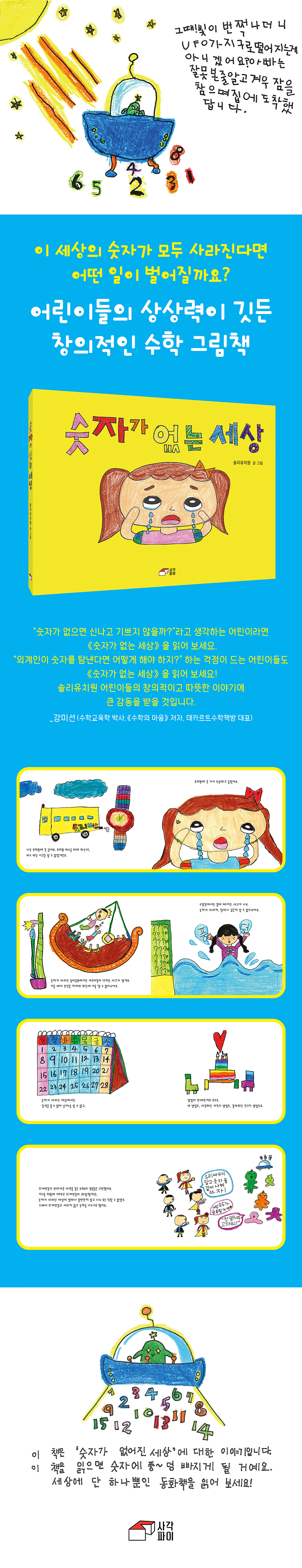 ¾î¸°À̵éÀÌ ¼ýÀÚ¿Í Ä£ÇØÁú ¼ö ÀÖµµ·Ï Àç¹ÌÀÖ°Ô ±¸¼ºÇÑ ¼öÇÐ ±×¸²Ã¥Àº ÀûÁö ¾Ê½À´Ï´Ù. »ç°¢ÆÄÀÌ ±×¸²Ã¥ ¡¶¼ýÀÚ°¡ ¾ø´Â ¼¼»ó¡·ÀÌ ±âÁ¸ÀÇ ¼ýÀÚ Ã¥°ú °¡Àå ´Ù¸¥ Á¡Àº À̾߱⠼ӿ¡ ¾î¸°À̵éÀÇ ´Ù¾çÇÑ ¸¶À½ÀÌ ±êµé¾î ÀÖ´Ù´Â °ÍÀÔ´Ï´Ù. ¾î¸°À̵éÀº ¼ýÀÚ°¡ »ç¶óÁø ¼¼»ó¿¡¼ ÀϾ ¼ö ÀÖ´Â ÀÏÀ» »ó»óÇÏ¸ç ³î¶ó¿ò, ¾Æ½¬¿ò, ºÒÆíÇÔ, ¼Ó»óÇÔ, ºÒ¾È°¨ °°Àº ¸¶À½À» ¼ÖÁ÷ÇϰÔ, ±×¸®°í ±¸Ã¼ÀûÀ¸·Î Ç¥ÇöÇß½À´Ï´Ù. °á±¹ »©¾Ñ±ä ¼ýÀÚ¸¦ µÇã¾Æ ¿À°í, Åë Å©°Ô ¿Ü°èÀεé°ú ¼ýÀÚ¸¦ ³ª´² ¾²±â·Î ÇÏ´Â °á¸»¿¡´Â ¼ýÀÚ¸¦ ¼ÒÁßÈ÷ ¿©±â´Â ¸¶À½¿¡¼ ÇÑ¹ß ³ª¾Æ°¡ ¼ýÀÚ¸¦ °¡Áø ÀںνɱîÁö ¿³º¸ÀÔ´Ï´Ù. ÀÌ·¯ÇÑ ¼öÇÐ Á¤¼´Â ÀÌ Ã¥À» Àд ¾î¸°ÀÌ µ¶Àڵ鿡°Ôµµ °í½º¶õÈ÷ Àü´ÞµÇ¾î, ÀÏ»ó ¼ÓÀÇ ¼öÇÐÀ» ¹ß°ßÇϰí ÀÌÇØÇϸç üÈÇÏ´Â °æÇèÀ» Á¦°øÇÒ °ÍÀÔ´Ï´Ù.