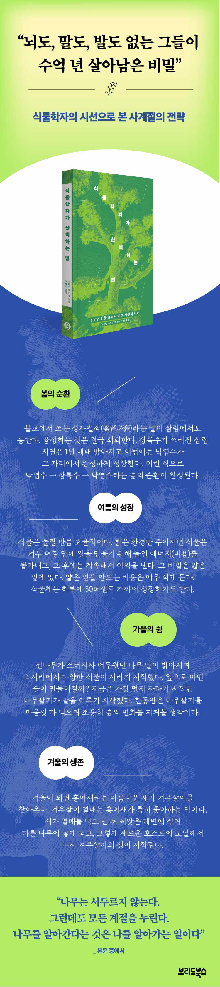 ¡º½Ä¹°ÇÐÀÚ°¡ »êÃ¥ÇÏ´Â ¹ý¡»Àº ±×°¡ 4°èÀý ³»³» Á÷Á¢ °üÂûÇÏ°í »çÀ¯ÇÑ ½Ä¹° À̾߱â 60ÆíÀ» ¿«Àº Ã¥ÀÌ´Ù. °Ü¿ì»ìÀÌ ¿¸Å¸¦ ¸Ô´Â »õ¿ÍÀÇ °ø»ý, ¼÷ÁÖ¸¦ Á×ÀÌ¸ç »ì¾Æ°¡´Â µ¢±¼ÀÇ Àü·«, 100¹ÌÅÍ À§·Î ¹°À» ²ø¾î¿Ã¸®´Â ·¹µå¿ìµåÀÇ ½ÅºñÇÑ ±¸Á¶, ¼ºÀåÀ» ¸ØÃß´Â ´ë½Å ¼ÓÀ» ºñ¿ö À¯¿¬ÇÔÀ¸·Î ¹öƼ´Â ´ë³ª¹«ÀÇ Ã¶ÇÐ ¡¦ °¢°¢ÀÇ ½Ä¹°Àº °íÀ¯ÇÑ ¹æ½ÄÀ¸·Î ÀÚ¿¬ÀÇ Áú¹®¿¡ ÀÀ´äÇØ ¿Ô´Ù.