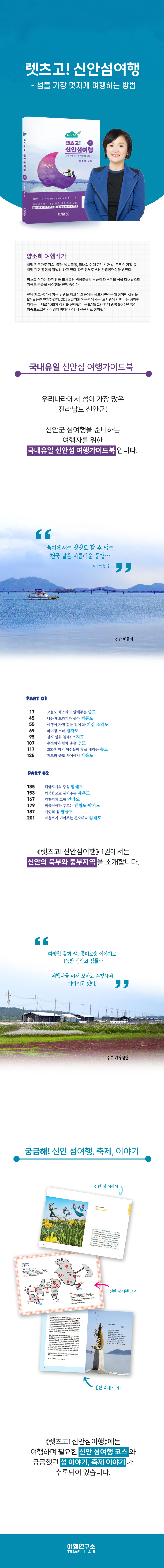 ¡´·¿Ã÷°í! ½Å¾È¼¶¿©ÇࡵÀ» Àд٠º¸¸é ¼¶Àº °¡±âµµ ¾î·Æ°í ¸Ô°í Àڱ⵵ ºÒÆíÇÑ °÷À̶ó´Â Æí°ßÀº ¹ö¸®°Ô µÈ´Ù. ½Ã°£ÀÌ ºÎÁ·ÇÑ ¿©ÇàÀÚ¿¡°Ô´Â ¿¬À°±³·Î ¿¬°áµÇ¾î ÇѳªÀý ´Ù³à ¿Ã ¼ö ÀÖ´Â ±³ÅëÀÌ Æí¸®ÇÑ ¼¶À» Ä£ÀýÇÏ°Ô ¼Ò°³ÇØ ÁÖ°í ÀÖ´Ù. ÇÑÆíÀ¸·Î´Â ¹Ù»Û Àλý ½Ã°è¸¦ Àá½Ã ´À½¼ÇÏ°Ô µ¹·Á³õ°í ¸Õ ¼¶À¸·ÎÀÇ ¿©Ç൵ ±ÇÇØº»´Ù. ¡´·¿Ã÷°í! ½Å¾È¼¶¿©Çࡵ Ã¥À» ´Ù ÀÐÀº ÈÄ¿¡´Â ½Å¾ÈÀÇ ¼¶µéÀÌ ´Ù¾çÇÑ ²É°ú »ö ±×¸®°í Èï¹Ì·Î¿î À̾߱â·Î °¡µæÇϱ⠶§¹®¿¡ Ä£±¸, °¡Á·, ¿¬ÀÎÀÇ ¿©ÇàÁö·Î Ưº°ÇÑ Ãß¾ïÀ» ¸¸µé±â ÁÁ´Ù´Â °ÍÀ» ÀÌÇØÇÏ°Ô µÈ´Ù. ¿À´Ãµµ ´ëÇѹα¹ÀÇ ¼¶µéÀº ¾î¼ ¿À¶ó°í ¼ÕÁþÇÏ¸ç ¿©ÇàÀÚ¸¦ ±â´Ù¸®°í ÀÖ´Ù. ÀÌÁ¦ Ã¥À» µ¤°í ¡°·¿Ã÷°í! ½Å¾ÈÀÇ ¼¶À¸·Î Ãâ¹ß~~¡± ÀÌ Ã¥À» ÅëÇØ ´ëÇѹα¹ÀÇ ¼ÒÁßÇÑ ¼¶µéÀÌ ´õ ¸¹Àº »ç¶÷µé¿¡°Ô »ç¶û¹Þ±æ ±â´ëÇØ º»´Ù.
