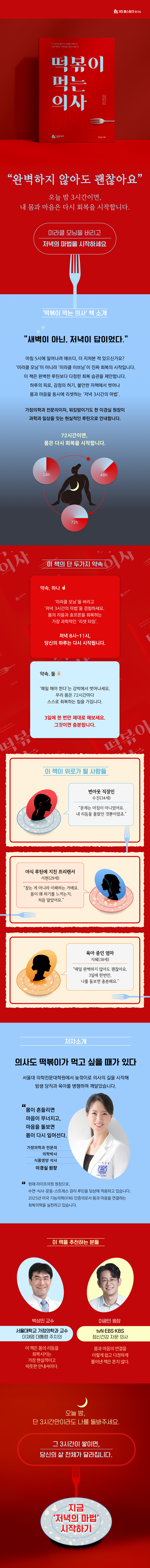 ÀÇ»çÀÌÀÚ ¿öÅ·¸¾ÀÎ ÀúÀÚ´Â ¡°¹®Á¦´Â ¾ÆÄ§ÀÌ ¾Æ´Ï¶ó Åð±Ù ÈÄ 3½Ã°£¡±À̶ó´Â »ç½ÇÀ» ³¯Ä«·Ó°Ô ¤¾î³½´Ù. ¹ã¸¶´Ù ÆøÁÖÇÏ´Â Çã±â µÚ¿¡´Â ½Å°æ»ý¸®ÇÐÀû ±äÀå, È£¸£¸óÀÇ ÆÄµ¿, µµÆÄ¹Î°ú ¼¼·ÎÅä´ÑÀÇ ºÒ±ÕÇü, °¨Á¤ÀÇ ¹Ìó Á¤¸®µÇÁö ¾ÊÀº Â±â°¡ ¼û¾î ÀÖ´Ù. ÀÌ Ã¥Àº ½º½º·Î¸¦ Å¿ÇÏÁö ¾Ê°í, ¸öÀ» ¡®´Ü·Ã¡¯ÇÏ´Â ´ë½Å ¡®µ¹º¸´Â¡¯ ¹æ½ÄÀ¸·Î ȸº¹ÇÏ´Â ¹ýÀ» ¾Ë·ÁÁØ´Ù.