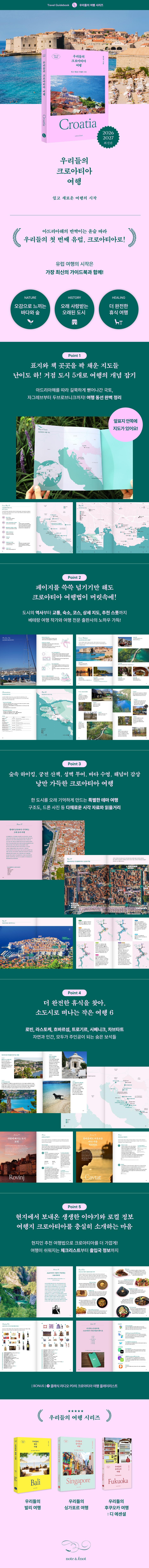 ¡¶¿ì¸®µéÀÇ Å©·Î¾ÆÆ¼¾Æ ¿©Çà¡·Àº À¯·´ ¿©ÇàÀÇ ³¶¸¸ÀÌ ¸ðµÎÀÇ Çö½ÇÀÌ µÇµµ·Ï ü°èÀûÀÎ Á¤º¸¿Í ´Ùä·Î¿î ½Ã°¢ ÀÚ·á¿¡ °øµéÀÎ Ãֽа¡À̵åºÏÀÌ´Ù. °ÅÁ¡ µµ½Ã 5°÷À¸·Î ÁÖ¿ä ÆÄÆ®¸¦ ±¸¼ºÇϰí Ç¥Áö ¾Õ³¯°³ ¾ÈÂʰú º»¹® °÷°÷À» 24°³ÀÇ Áöµµ¿Í ±¸Á¶µµ·Î ²Ë ä¿ö Á÷°üÀûÀ¸·Î ¿©ÇàÀÇ °³³äÀ» Àâµµ·Ï µ½´Â´Ù. µµ½Ãº° ÆÄÆ®¿¡¼± ÆäÀÌÁö¸¦ ¾³¾³ ³Ñ±â±â¸¸ ÇØµµ ¿©Çà¹ýÀÌ ¸Ó¸´¼Ó¿¡ ´ã±ä´Ù. ¿ì¸®°¡ ±×°÷À¸·Î ¶°³ª¾ß ÇÏ´Â ÀÌÀ¯ºÎÅÍ ¿ª»ç, ±³Åë, ¼÷¼Ò, ÄÚ½º, »ó¼¼ Áöµµ, Ãßõ ½ºÆý, ¿©Çà ÆÁ±îÁö Æí¾ÈÇϸ鼵µ º¸´Â Àç¹Ì°¡ ÀÖµµ·Ï ±¸¼ºÇß´Ù.