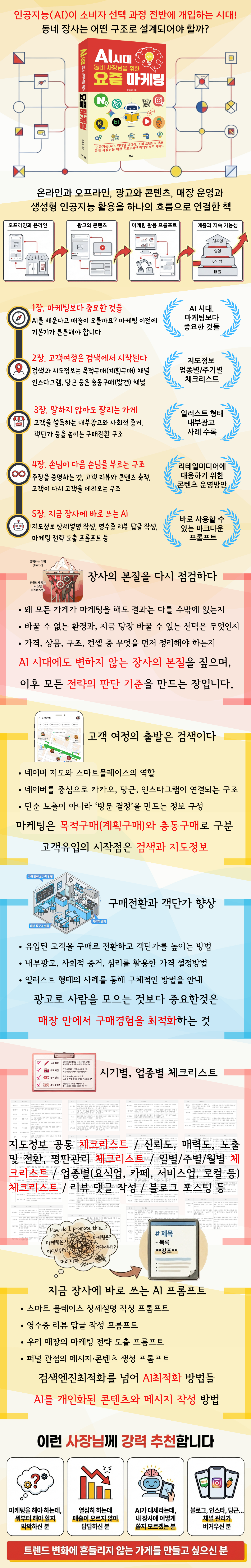 ÀÌ Ã¥ÀÇ »ý¼ºÇü AI¸¦ ¸¶ÄÉÆÃ Àü¹®°¡ÀÇ ¿µ¿ªÀÌ ¾Æ´Ñ, µ¿³× »çÀå´ÔÀÇ ÀÏ»óÀûÀÎ µµ±¸·Î ´Ù·ç°í ÀÖ½À´Ï´Ù. ¹Ù·Î ÀÔ·ÂÇØ »ç¿ëÇÒ ¼ö ÀÖ´Â ÇÁ·ÒÇÁÆ®¿Í üũ¸®½ºÆ®µéÀÌ Á¦½ÃµÇ¾î ÀÖ½À´Ï´Ù. ÁöµµÁ¤º¸ ¼³¸í ÀÛ¼º, ¿µ¼öÁõ ¸®ºä ´ä±Û, °í°´ Æä¸£¼Ò³ª ¼³Á¤, À̹ÌÁö »ý¼º±îÁö ½ÇÁ¦ ¸ÅÀå ¿î¿µ¿¡¼ ÀÚÁÖ ¸¶ÁÖÄ¡´Â »óȲÀ» ±âÁØÀ¸·Î AI Ȱ¿ë¹ýÀ» Á¦½ÃÇϰí ÀÖ½À´Ï´Ù. ³» Àå»ç¿¡ ¸Â°Ô ¾²´Â °ÍÀÌ Áß¿äÇÏ´Ù´Â °üÁ¡À» ÀϰüµÇ°Ô À¯ÁöÇϰí ÀÖ½À´Ï´Ù. ¸¶ÄÉÆÃ¿¡ ½Ã°£À» »©¾Ñ±âÁö ¾Ê°í, ÆÇ´Ü°ú ½ÇÇà¿¡ ÁýÁßÇÏ°í ½ÍÀº »çÀå´Ô²² ½ÇÁúÀûÀÎ µµ¿òÀ» ÁÖ´Â ½Ç¹«¼ÀÔ´Ï´Ù.