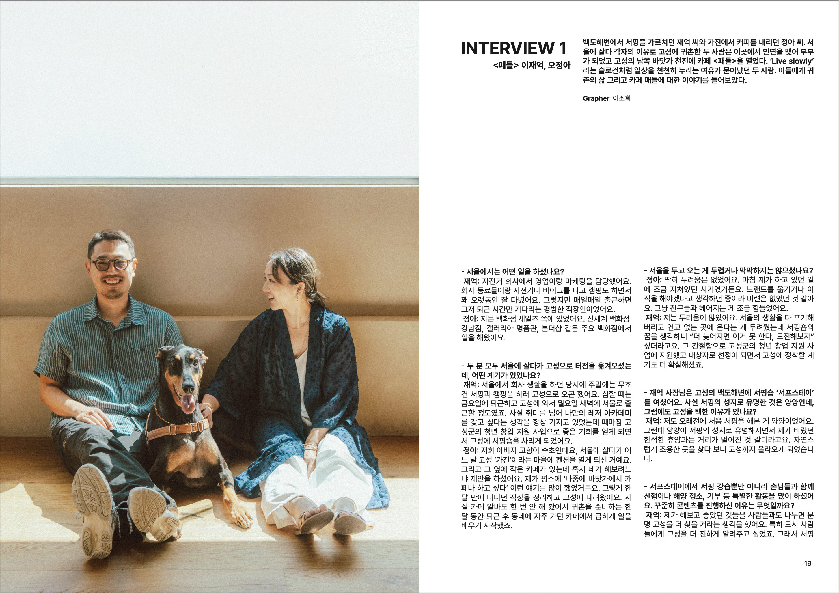 ù ¹øÂ° ºê·£µå´Â Ä«Æä ¡®ÆÐµé¡¯ÀÔ´Ï´Ù. ÀÌ ºê·£µå¸¦ ¿î¿µÇÏ´Â ÀÌÀç¾ï, ¿ÀÁ¤¾Æ ºÎºÎ´Â ¼¿ïÀ» ¶°³ª °¿øµµ °í¼º¿¡ Á¤ÂøÇÑ µÚ ¡®Live Slowly¡¯¸¦ »îÀÇ ½½·Î°ÇÀ¸·Î »ï°í ÀÚ¿¬ ¼Ó¿¡¼ »õ·Î¿î »îÀÇ ¸®µëÀ» ¸¸µé¾î°¡°í ÀÖ½À´Ï´Ù. ÀÌ Ã¥Àº ±×µéÀÇ ¼±Åðú ¿©Á¤, °í¼º¿¡¼ÀÇ »î¿¡ °üÇÑ À̾߱âÀÔ´Ï´Ù.