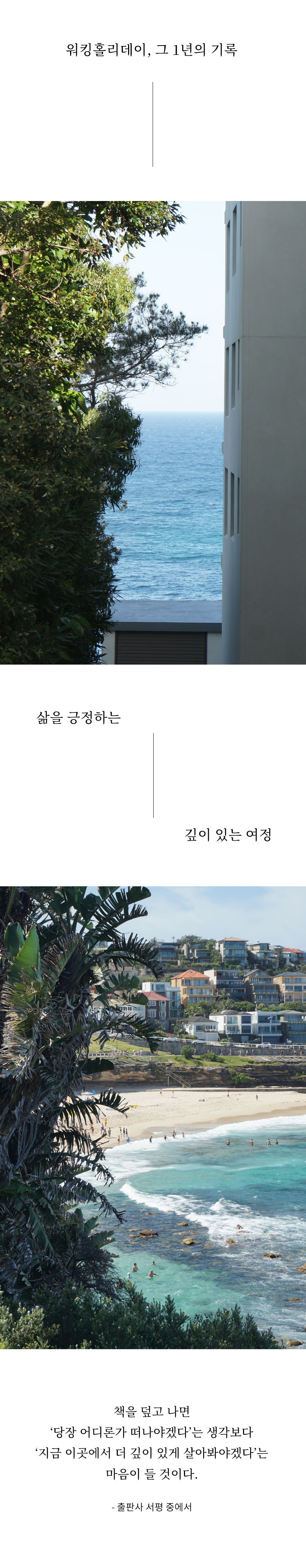 Ã¥¼Ò°³ÀúÀÚ´Â ¡®¿Ü±¹¿¡¼ »ì¾Æº¸±â¡¯¶ó´Â ¿À·£ ²ÞÀ» ÀÌ·ç±â À§ÇØ È£ÁÖ·Î ¿öŷȦ¸®µ¥À̸¦ ¶°³µ´Ù. ½Ãµå´Ï¿¡ 1³â°£ °ÅÁÖÇÏ¸ç µµ½Ã °÷°÷À» ´©º³°í, ¸á¹ø°ú ¿ï·ç·ç, ÆÛ½º ¿©ÇàÀ» ¸¶Ä£ ÈÄ ±Í±¹Çß´Ù.