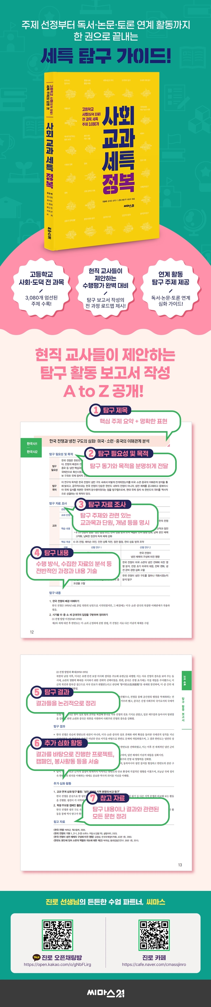 ÀÌ Ã¥Àº ´Ü¼øÈ÷ ÁÖÁ¦¸¦ ³ª¿ÇÏ´Â °ÍÀ» ³Ñ¾î 2022 °³Á¤ ±³À°°úÁ¤¿¡ µû¸¥ »çȸ ¹× µµ´ö ±³°ú±º Àü °ú¸ñÀÇ ¼ºÃë±âÁØ 308°³¸¦ Á¤¹ÐÇÏ°Ô ºÐ¼®ÇÏ¿©, ±âº»ºÎÅÍ ½ÉÈ È°µ¿±îÁö °¡´ÉÇÑ 3,080°³ÀÇ Å½±¸ ÁÖÁ¦¸¦ ¾ö¼±ÇÏ¿´½À´Ï´Ù. ¿ì¼± °¢ ´Ü¿øÀÇ ÇÙ½É ³»¿ëÀ» °üÅëÇÏ´Â ±³°ú ¼¼Æ¯ ޱ¸ ÁÖÁ¦¸¦ ¼±Á¤ÇÑ ÈÄ À̸¦ ¹ÙÅÁÀ¸·Î ÇÑ ½ÉÈ Å½±¸ Ȱµ¿±îÁö ÁøÇàÇÒ ¼ö ÀÖµµ·Ï, °ü·Ã ±íÀº µµ¼¿Í ³í¹®À» »Ì¾Æ ޱ¸ ÁÖÁ¦¿Í ÇÔ²² Á¦½ÃÇÏ¿´½À´Ï´Ù. ¶ÇÇÑ ÇöÁ÷ ±³»çµéÀÌ Á¦¾ÈÇϴ Ž±¸ º¸°í¼ ÀÛ¼ºÀÇ A to Z Áï, ޱ¸ µ¿±â ¼³Á¤ºÎÅÍ ÀÚ·á Á¶»ç, ³»¿ë Á¤¸®, °á°ú µµÃâ, ±×¸®°í ½ÉÈ È°µ¿À¸·Î À̾îÁö´Â ޱ¸ º¸°í¼ ÀÛ¼ºÀÇ Àü °úÁ¤À» ü°èÀûÀÎ ·Îµå¸ÊÀ¸·Î Á¦½ÃÇÏ¿©, ÇлýµéÀÌ ½º½º·Î âÀÇÀûÀÌ°í ºñÆÇÀûÀΠŽ±¸ ¿ª·®À» Ű¿ï ¼ö ÀÖµµ·Ï µ½½À´Ï´Ù.