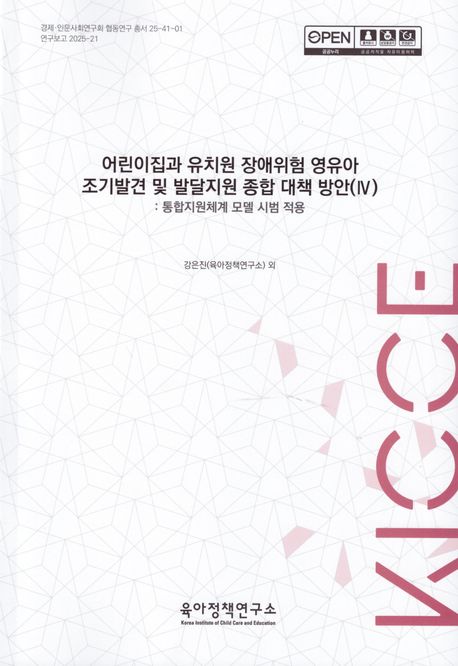 ¾î¸°ÀÌÁý°ú À¯Ä¡¿ø Àå¾ÖÀ§Çè ¿µÀ¯¾Æ Á¶±â¹ß°ß ¹× ¹ß´ÞÁö¿ø Á¾ÇÕ ´ëÃ¥ ¹æ¾È(4): ÅëÇÕÁö¿øÃ¼°è ¸ðµ¨ ½Ã¹ü Àû¿ë